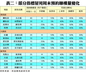 利嘉閣地產研究部主管陳海潮表示,發展商積極推出一手新盤搶灘應市,並以貼市價作招徠,全方位鎖起市場購買力,導致二手客源被瓜分,50指標屋苑預約睇樓人數跌勢未止。根據利嘉閣地產研究部數據估算,全港50個指標屋苑共錄1,180組客戶於周末預約睇樓,較上周的1,235組跌4.5%,連跌3周,創下近8個周末新低紀錄。