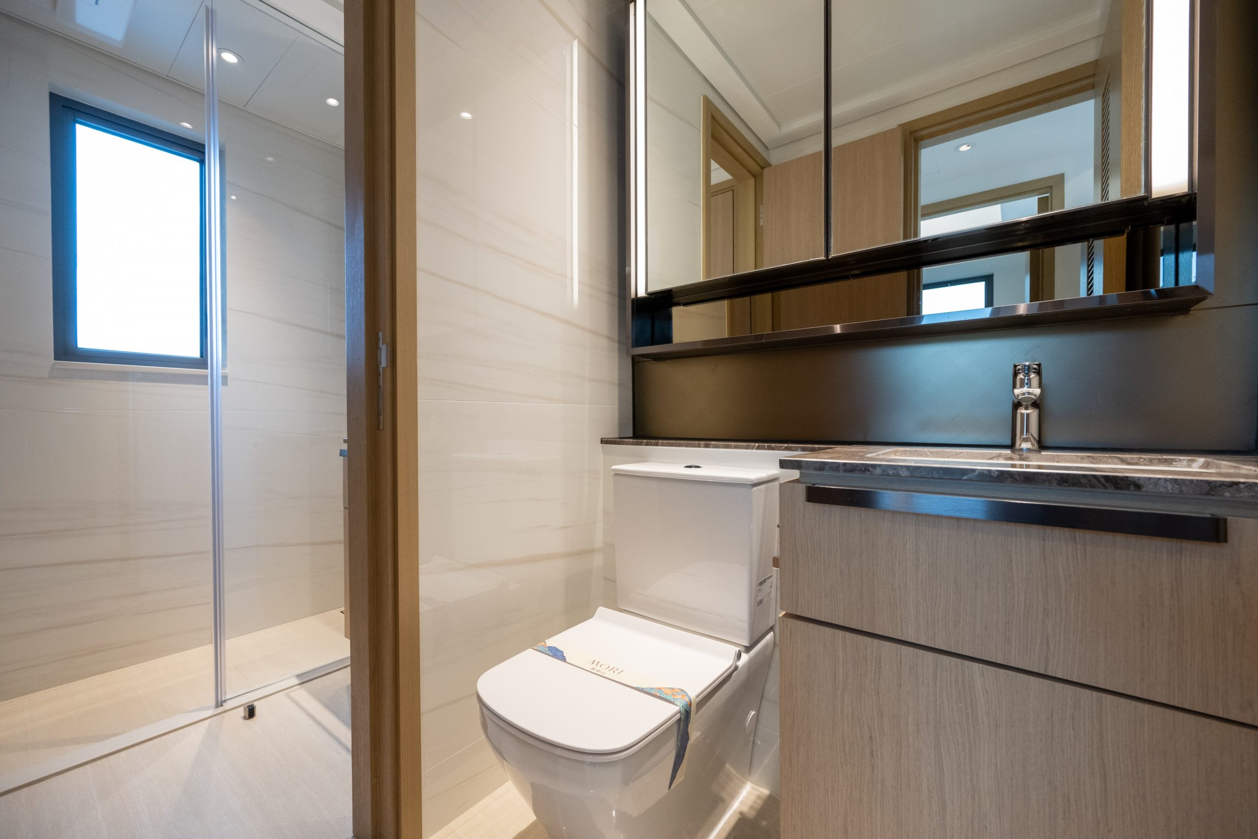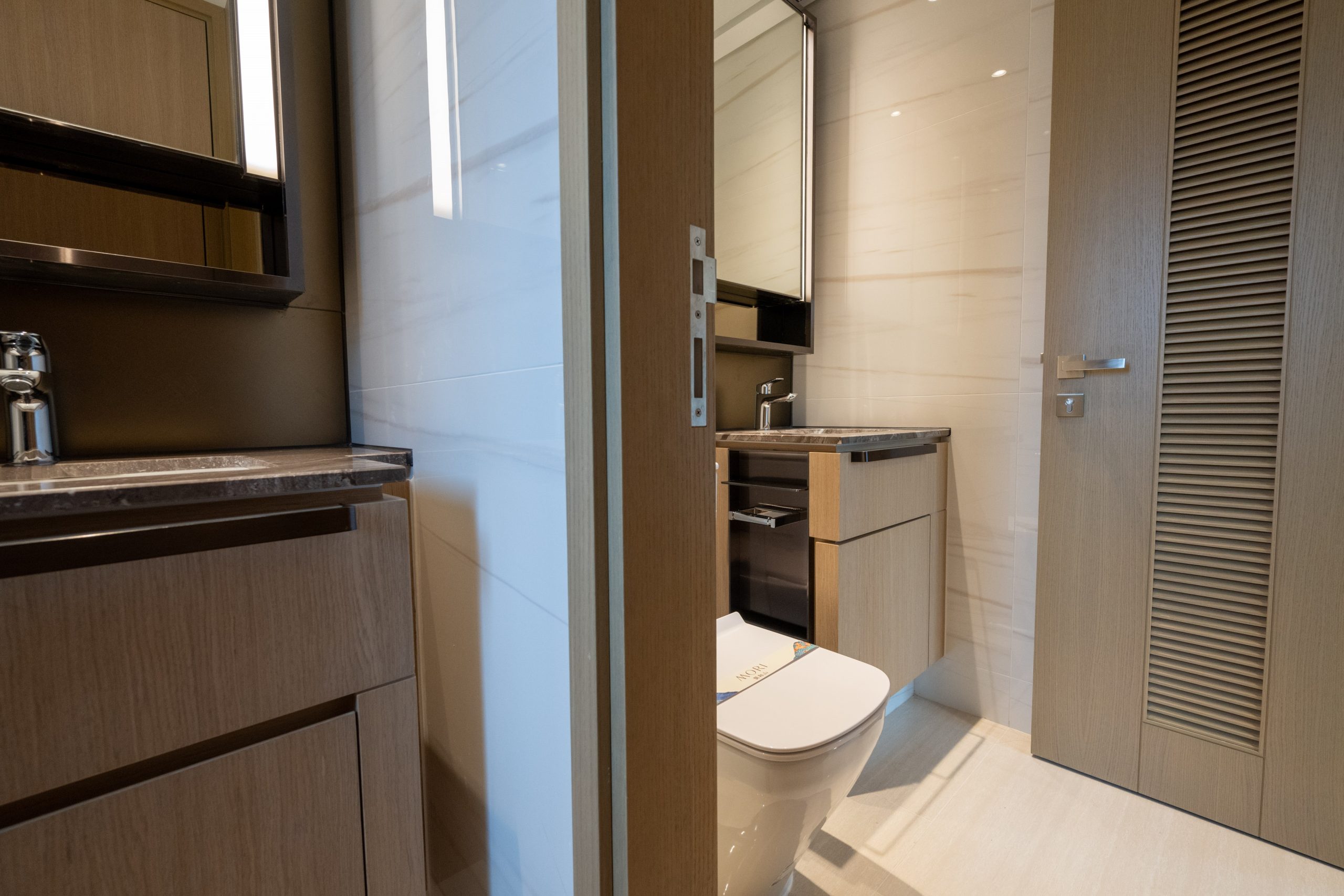 單位採用珍罕的荷里活式浴室,設雙洗手盤及雙門設計,使得浴室可以輕鬆分成兩個獨立的區域,呼應項目日式生活的主題。浴室同樣配備Panasonic浴室寶及德國著名衛浴品牌Hansgrohe水龍頭及淋浴套裝。