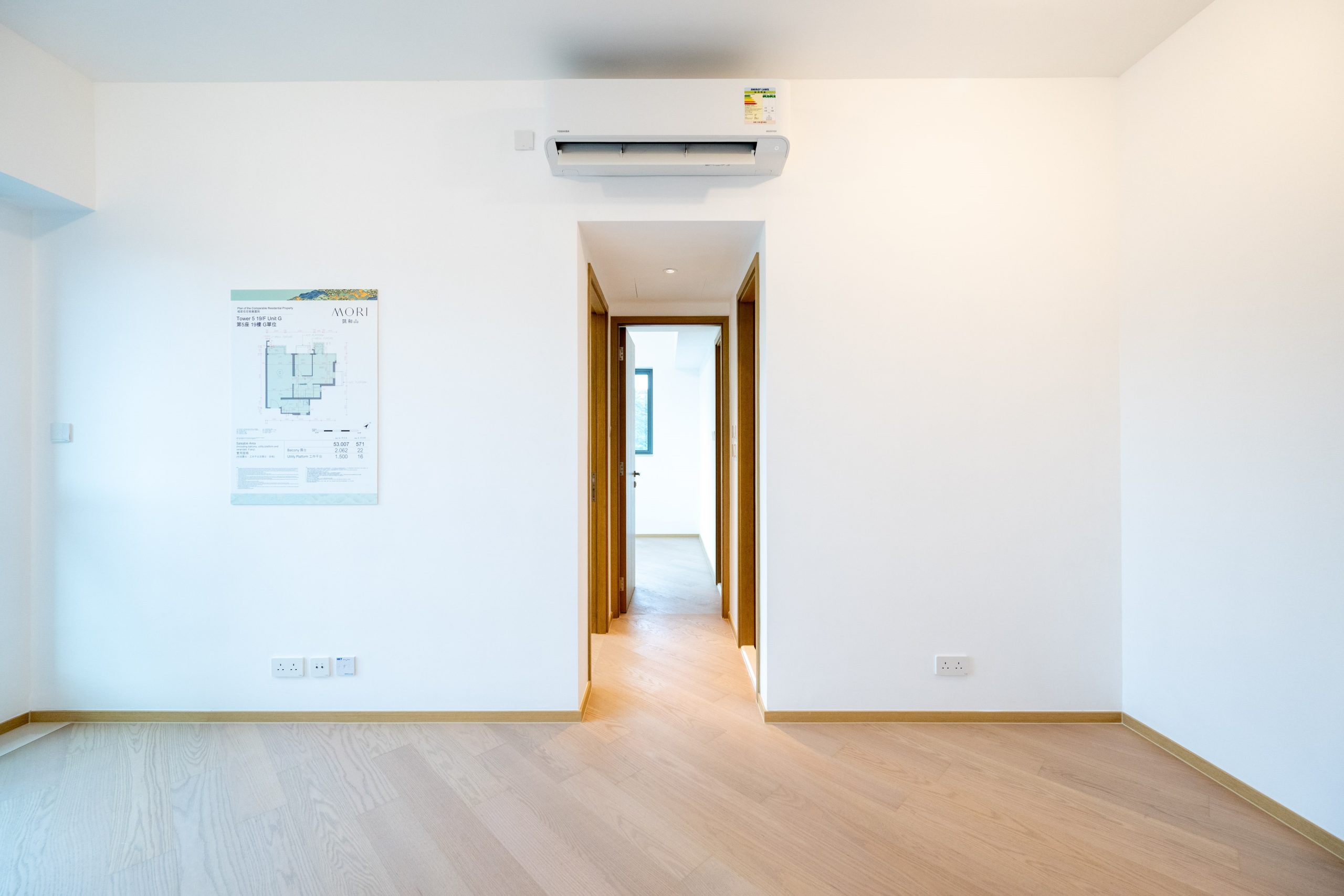 至於主人房長約3.42米,寬約2.65米,擺放大床後相信仍有足夠空間做到三邊落床。廳房同面向九徑山景觀,主人房更設有玻璃曲尺大窗,享270度廣角觀景;加上設置對流窗方便鮮風入戶。