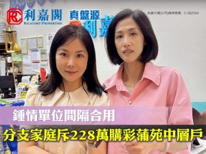 分支家庭客鍾情單位間隔合用 未補價228萬購上水彩蒲苑中層戶