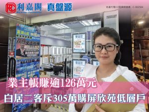 黃氏表示,買家為白居二身份的區內分支家庭,早前經利嘉閣真盤源平台搵樓,見上述放盤即約代理睇樓,認為單位間隔合適,鄰近港鐵天水圍站,出行方便,即與業主洽商議價,最終以305萬元(未補地價)買入單位,折合實用面積呎價約8,112元。