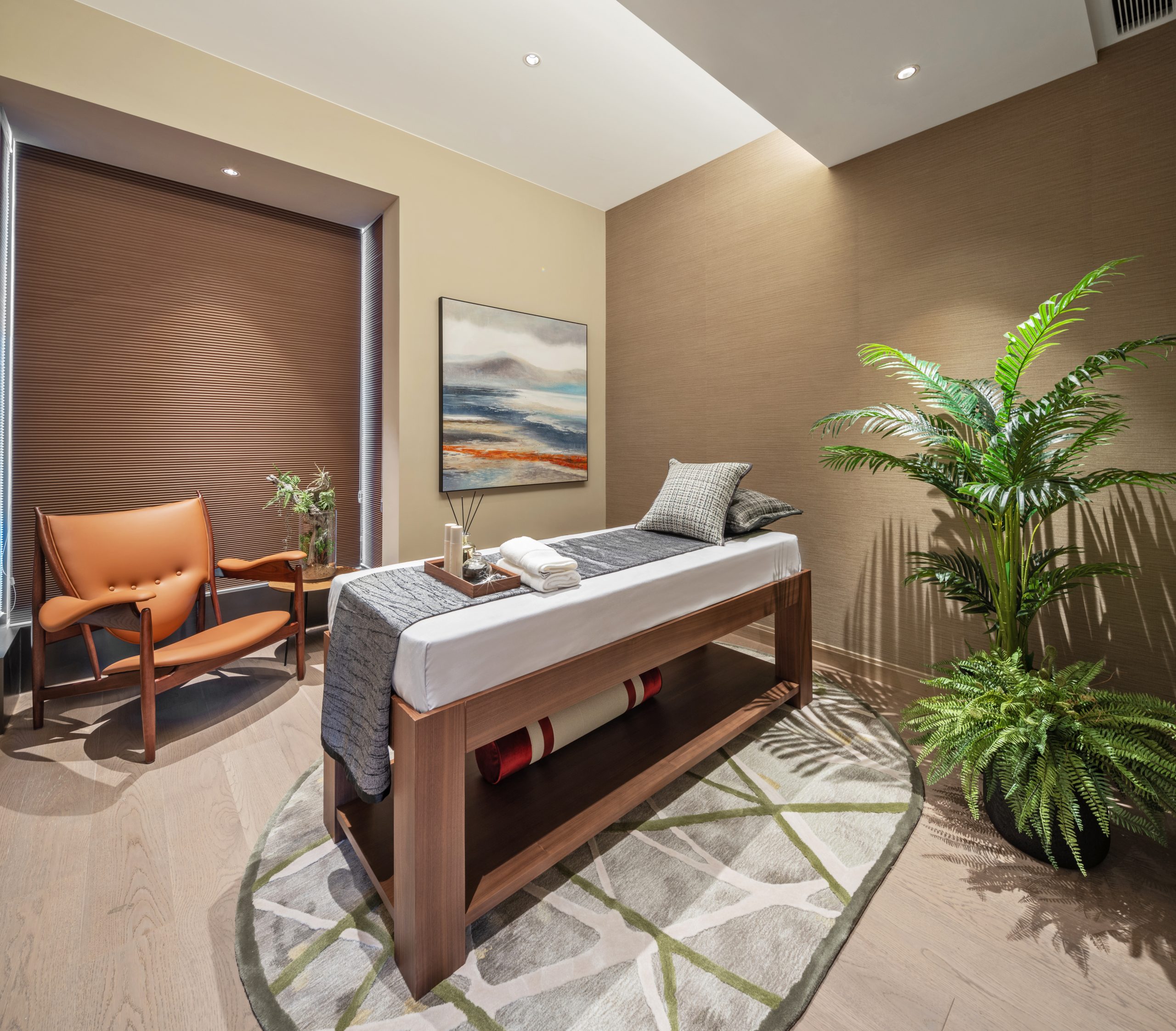 二樓是主人的專屬空間,超過500方呎的主人套房,擺放著各種馬術裝飾及配件,由馬鞭、馬鐙和口銜鐵等,展現出屋主對馬匹的濃厚興趣和熱愛。主人房放了一張雙人大床,床尾擺放雙人梳化和方型茶几,屋主留在房中已可獨享一個私人視聽空間。近浴室位置更有寬敞的空間打造屋主的個人衣帽間,高雅而簡約的馬鞍型儲物梳妝台和衣櫃展現出屋主對時尚品味的要求。設計師更特意為屋主將其中一間睡房改造成泰式按摩房,讓屋主在完成一天繁忙的工作後,可盡情放鬆享受放鬆同時將繁瑣的心情及疲憊一掃而空。洋房頂樓設有天台擺放了戶外餐桌、吧枱及戶外梳化,可供屋主與親朋好友燒烤聚會,而地庫則配備歐洲古堡式酒窖設計的雙車位車庫。
