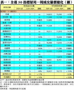 50指標屋苑上周錄76宗買賣 交投跌勢喘穩