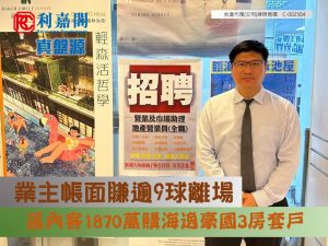利嘉閣地產紅磡九豪區海逸分行A組首席聯席董事潘立信(Elvis)稱,該行客戶董事鄭永輝(Sam)(圖)新近促成紅磡海逸豪園17座中低層B室的二手成交個案,單位實用面積約1,100方呎,屬3房1套連工人房間隔,外望啟德郵輪碼頭海景。