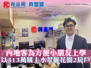 周氏表示,買家為內地客,一直有留意利嘉閣真盤源平台,見上述放盤即約代理睇樓,鍾情單位間隔四正,屋苑周邊生活配套齊全,且鄰近學校方便小朋友返學,睇樓後以313萬元購入上述單位,折合實用面積呎價約7,330元。