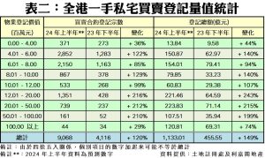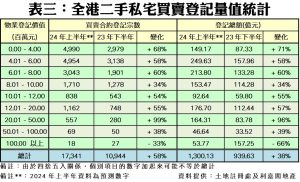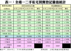 至於二手市場方面,預期續受高息壓力及新盤低價搶佔客源影響,交投將呈萎縮,料下半年二手私宅交投量將較上半年的1.73萬宗回落兩成,至約1.38萬宗;全年累計,二手買賣料錄3.11萬宗水平,將較2023年約2.83萬宗增加近9.9%。綜合預計,在下半年一二手同步齊降下,整體私宅登記量料挫兩成,最終料達2.11萬宗水平;而全年總計料錄約4.75萬宗,將較2023年的約3.85萬宗漲23%。