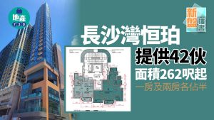 長沙灣恒珀提供42伙 面積262呎起 一房及兩房各佔半