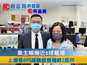黃氏指,新買家為上車客,正計劃結婚,所以決定由租轉買,故早前經利嘉閣真盤源平台搵樓,見到上址放盤,即相約代理睇樓,除鍾情屋苑的發展商品牌,亦喜歡居住環境清幽寧靜,且單位間隔合用,可享翠綠山景,便向業主洽購。業主原叫價750萬元,經雙方議價後,最終以695萬元成交,折合實用面積呎價約13,817元。