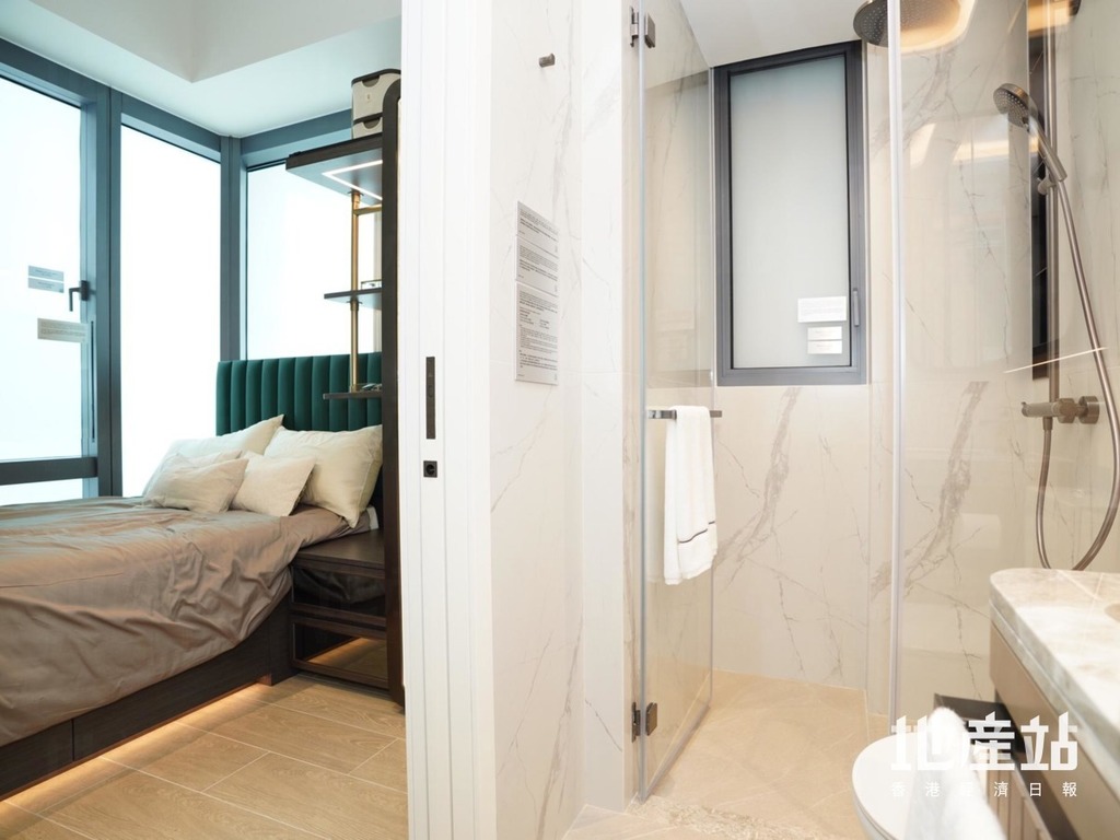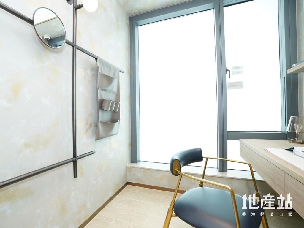 單位備有兩間房間,其中一間房間改成書房設有玻璃大窗,採光充足。至於主人房設有轉角窗,可以將窗外景色引入室內,而擺放雙人床後,可以放置衣帽間,主人房設有門可直通洗手間,動線直接方便。洗手間簡潔明亮,採明廁設計,有助採光通風。