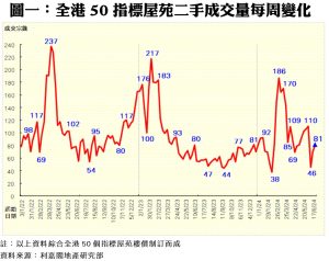 利嘉閣地產研究部主管陳海潮表示,在大型一手全新盤推售的空檔期下,購買力再次轉流二手市場尋覓筍盤,推動二手屋苑交投量自低位連周回升。綜合利嘉閣地產分行數據所得,全港50個指標屋苑於上周(24/6—30/6)共錄81宗買賣個案,較前周(17/6—23/6)的70宗增加16%,連升兩周並創近三周以來最多。