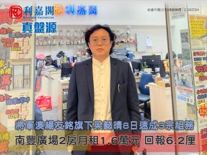 將軍澳楊友銘旗下梁懿晴8日速成3宗租務 南豐廣場2房月租1.6萬元 回報6.2厘