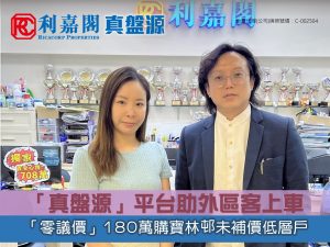 楊氏表示,外區客早前經利嘉閣真盤源平台搵樓,經代理介紹上址。參觀後,認為單位間隔合用,加上屋苑位置極為方便,附近商店及食肆林立,亦可步行至港鐵站,遂向業主洽購,並「零議價」以180萬元(未補地價)購入單位,折合實用面積呎價約4,724元。