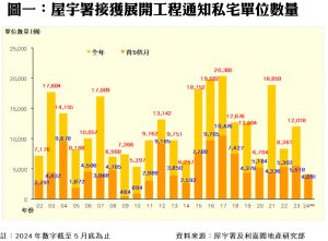 此外,私人住宅落成量方面,根據屋宇署今日最新發表的資料月報顯示,2024年五月份全港共有1個項目,合共80個私人住宅單位落成(以屋宇署發出佔用許可證的樓宇數量為準),較四月份的624伙減少87%;至於今年首五個月累計共5,681伙私宅落成,較去年同期的7,222伙減少21%,為五年同期最少。