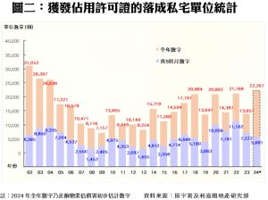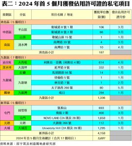 陳海潮指出,今年首五個月私宅落成量達差估署預測全年22,267伙約25.5%,預料年內有不少大型項目將陸續取得入伙紙,包括天水圍「YOHO WEST」第1期(1,393伙)、何文田「瑜一」第IA期(447伙)及第IB期(183伙)等,加上其他中小型項目,初步估計今年全年落成量可達逾2.3萬伙水平。