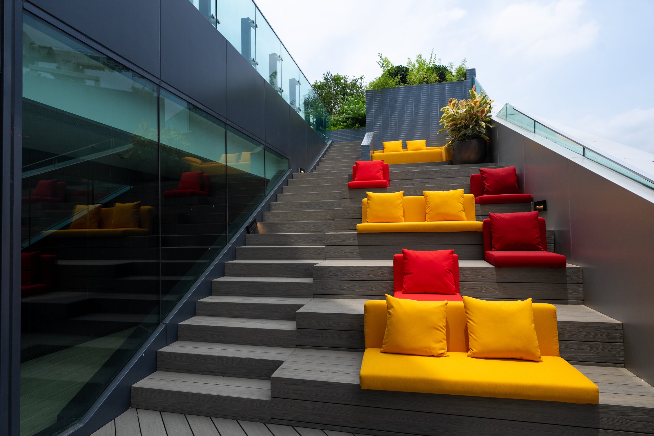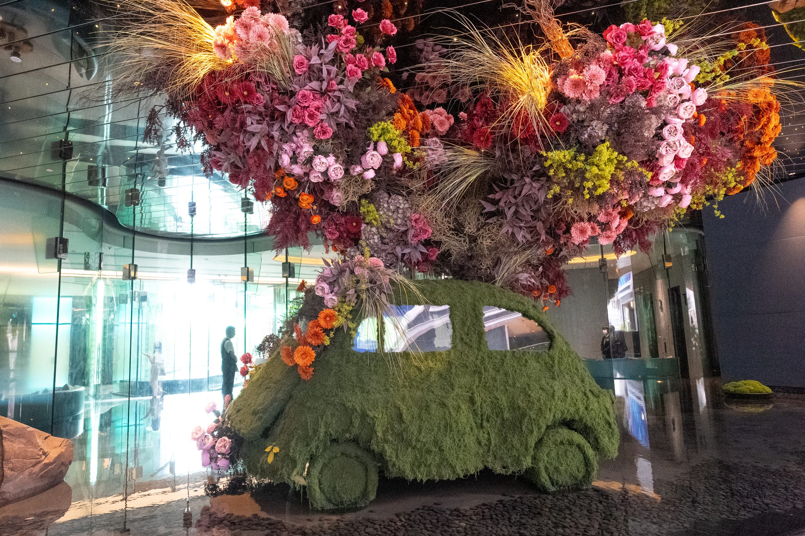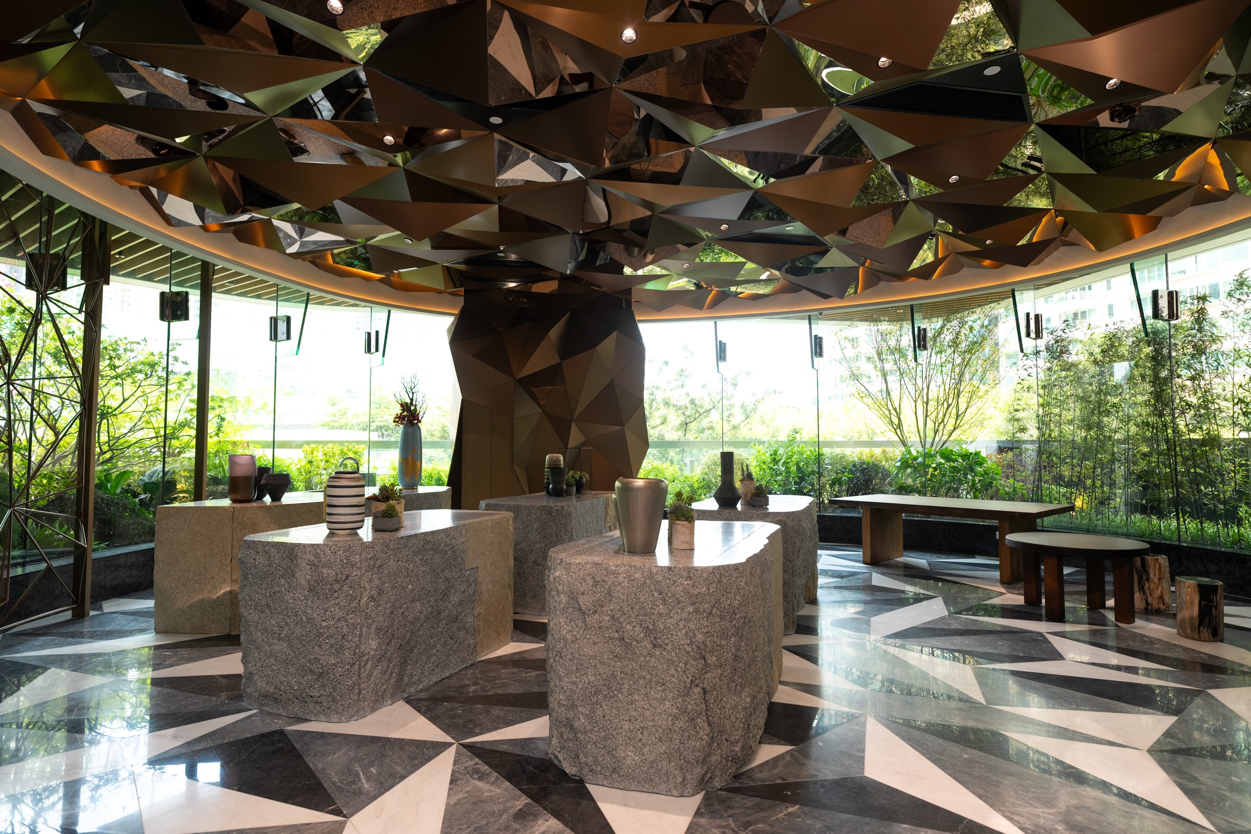 會所亦精心設置多項大型綠藝裝置,香港著名花藝師鄭蘶以苔蘚打造的「綠藝魔術車」突破傳統花藝設計框架,而「隅聚所」的玻璃中樹「綠椿」則以玻璃櫥窗展示大樹貫頂,同時引進自然光,為室內會所注入活力。此外,會所連園林更裁種超過60種的植物種類,不但豐富生物多樣性,也為住戶帶來多彩的園林休閒空間。