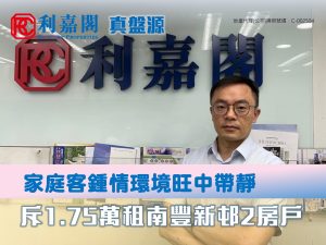鍾情屋苑位置旺中帶靜 家庭客17500元租南豐新邨2房戶