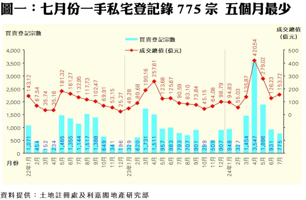一手買賣登記三連跌 七月僅775宗 新盤續低價應市 八月料重越千宗水平