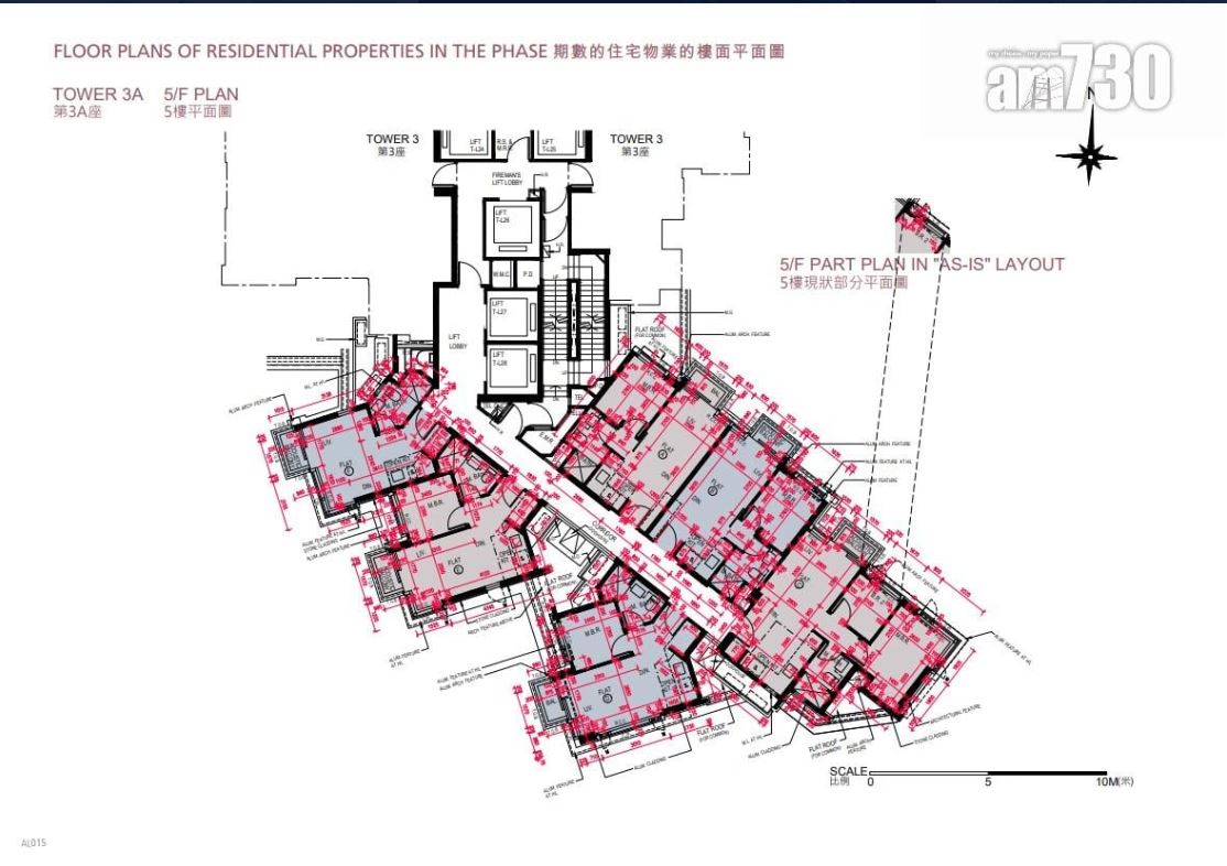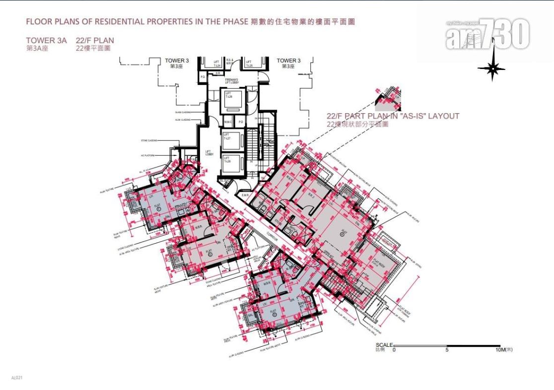 全盤最細單位為3A座的F室,實用面積277方呎,開放式間隔。面積最大單位為3座22樓A室,實用面積2,127方呎,連1,034方呎天台,四房間隔,單位內置樓梯前往天台。據樓書顯示,今期提供33個住宅停車位及4個住宅電單車停車位。