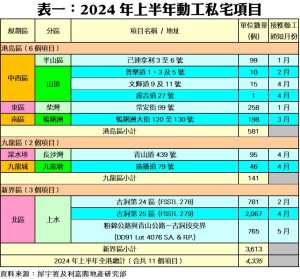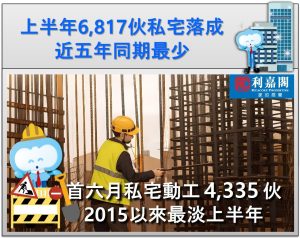 上半年6,817伙私宅落成 五年同期新低 私宅動工量上半年4,335伙 十年同期最少
