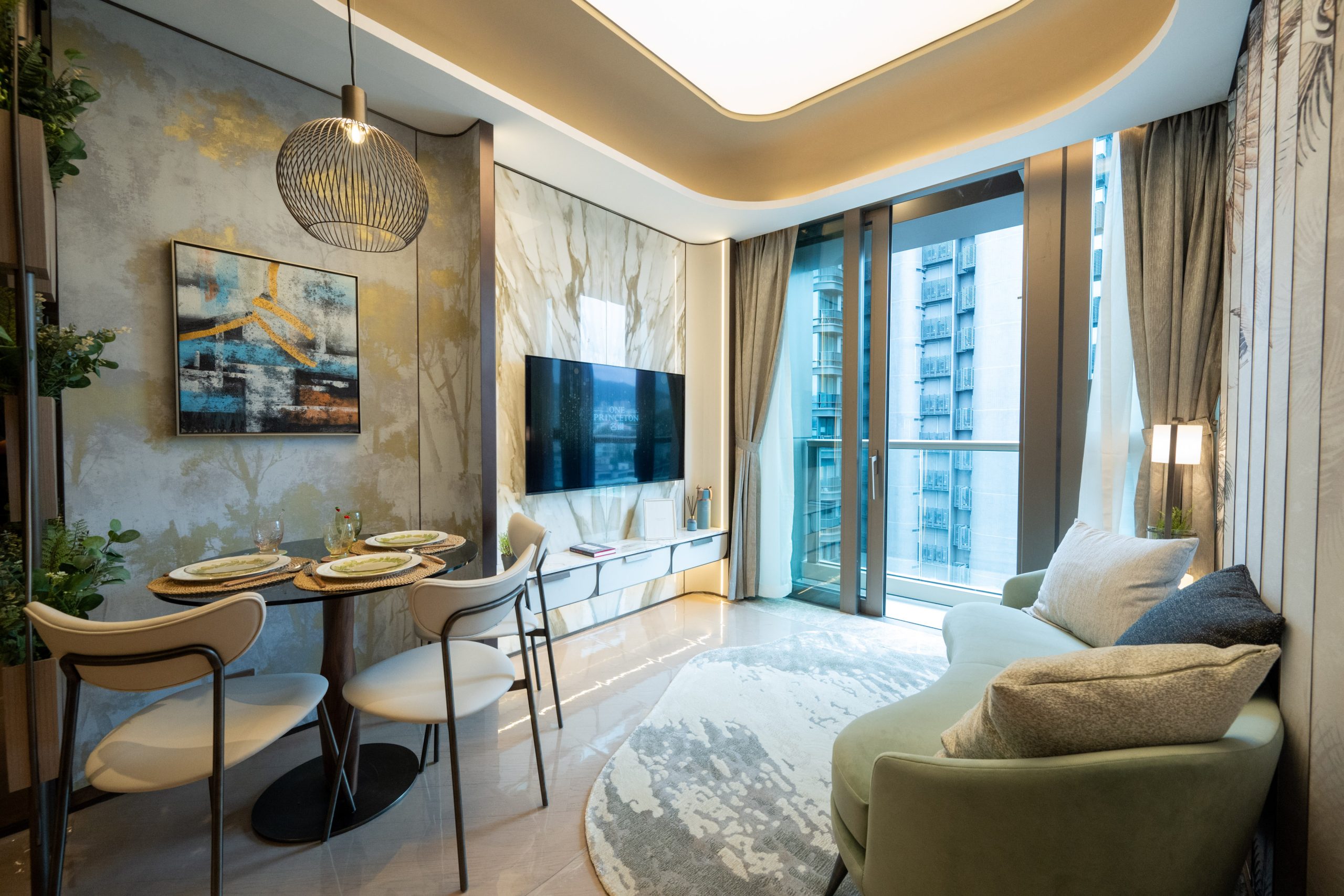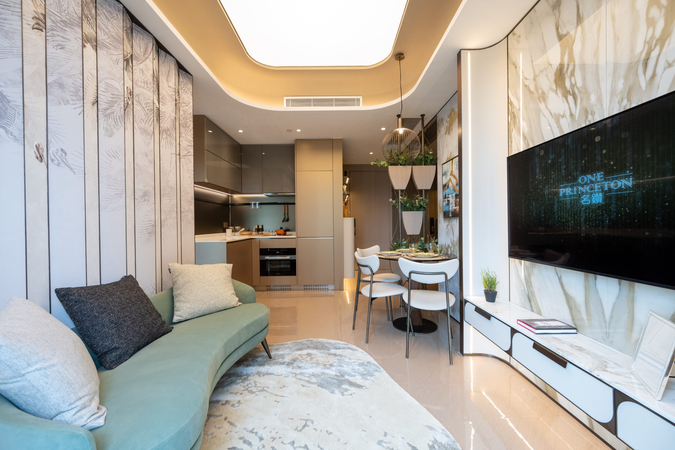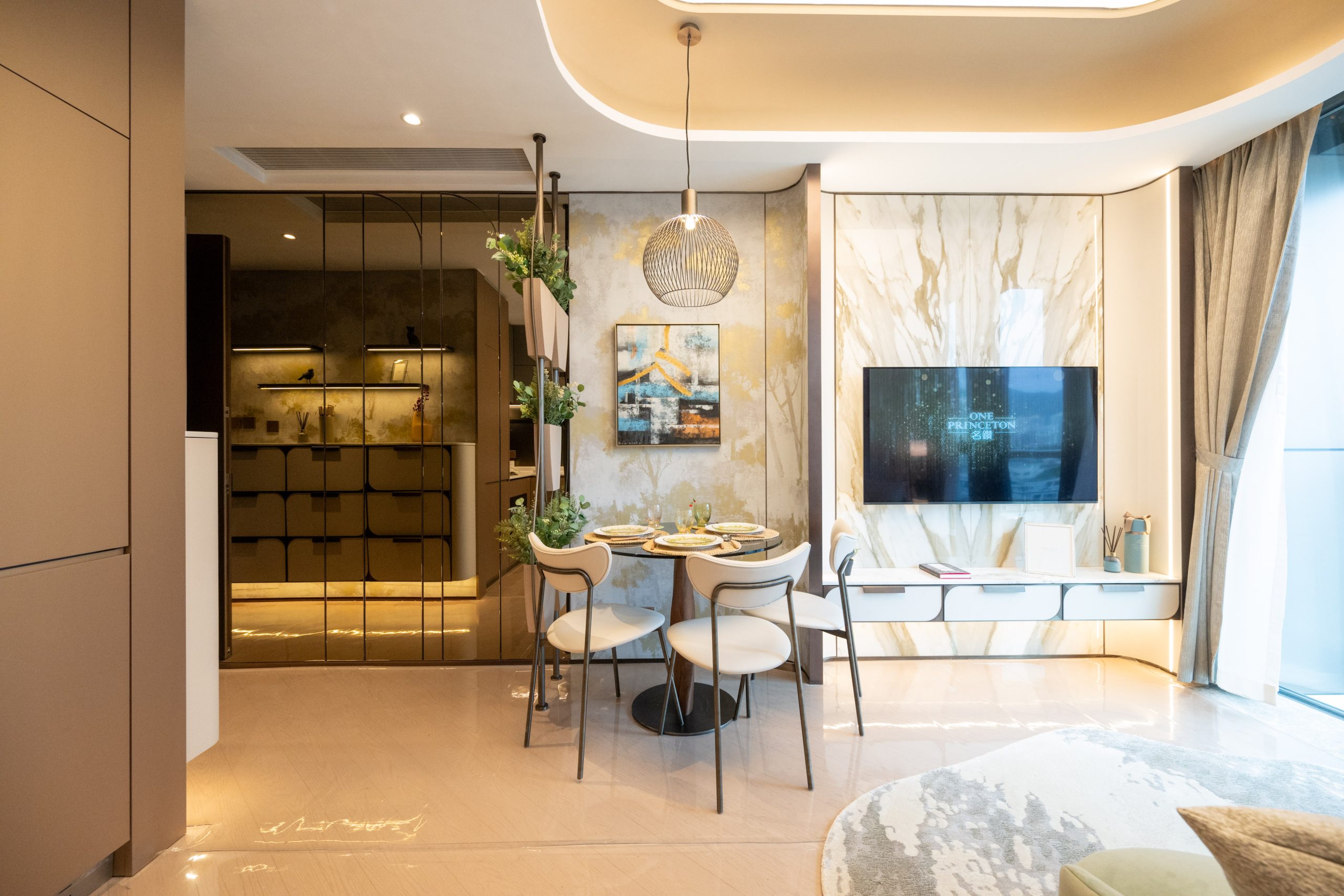 益兆集團控股旗下何文田太子道西266號重建項目「名鑽」設有2個連裝修示範單位,涵蓋三房及兩房間隔,實用面積分別為819方呎和448方呎。其中12樓C室,實用面積819方呎,三房一套連儲物室間隔,大門標配Samsung智能電子鎖,門口位連接玄關區,除了預留空間擺放鞋櫃,玄關的中空天花及左側鏡面設計,亦盡顯豪宅氣派。單位開則方正實用,長方型客飯廳連接全落地玻璃窗的露台,層與層之間的高度約3.3米,令室內空間感及採光率十足。單位坐向南方,可以俯瞰市區開揚景觀。