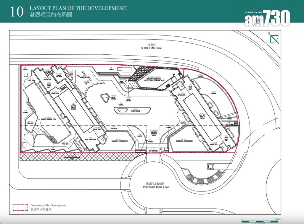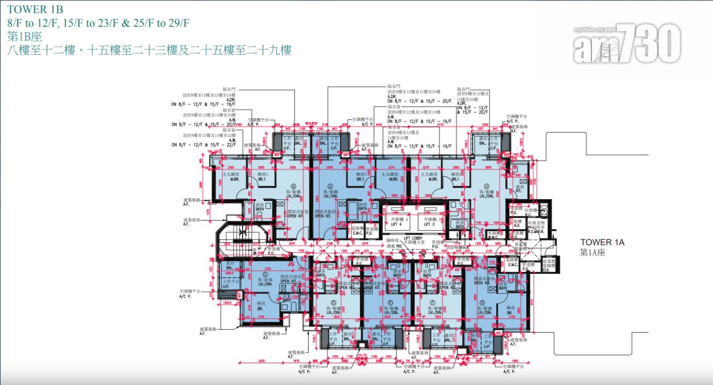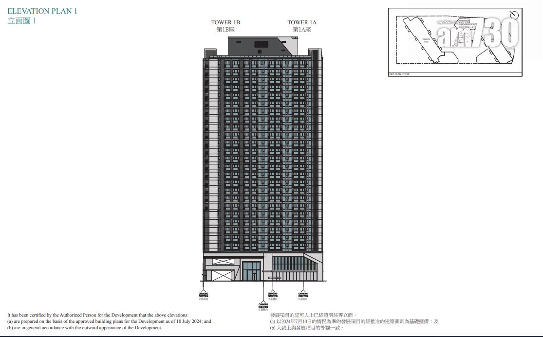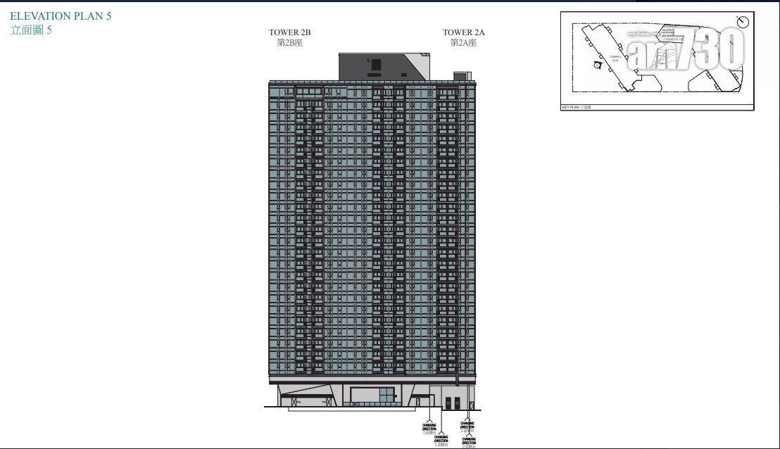 據售樓說明書顯示,項目採雙子大廈設計,由樓高26層和27層的第1座及第2座組成,各細分為相連的A、B兩翼。項目住宅樓層由2樓起,不設4樓、13樓、14樓及24樓。