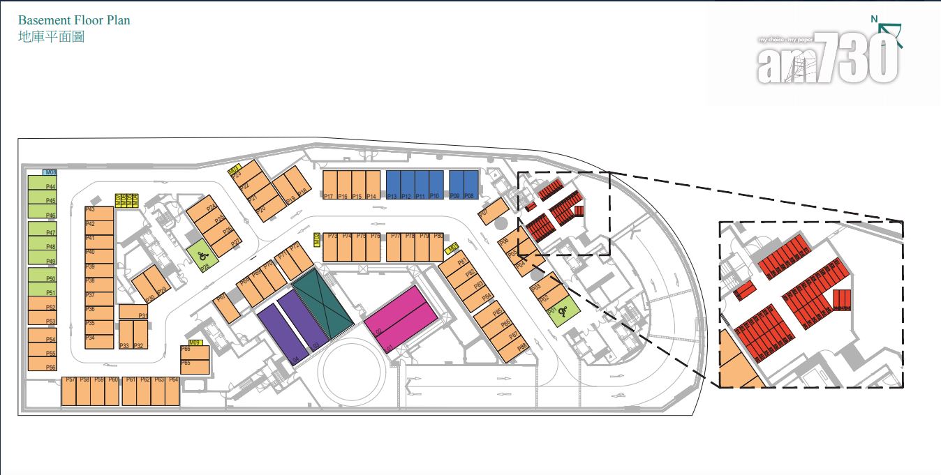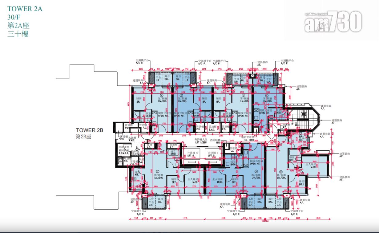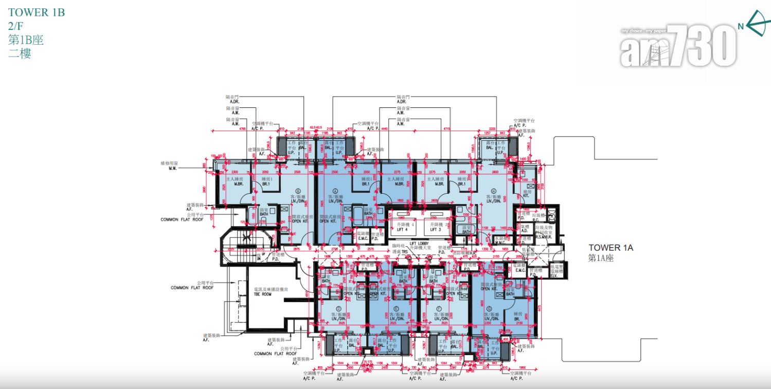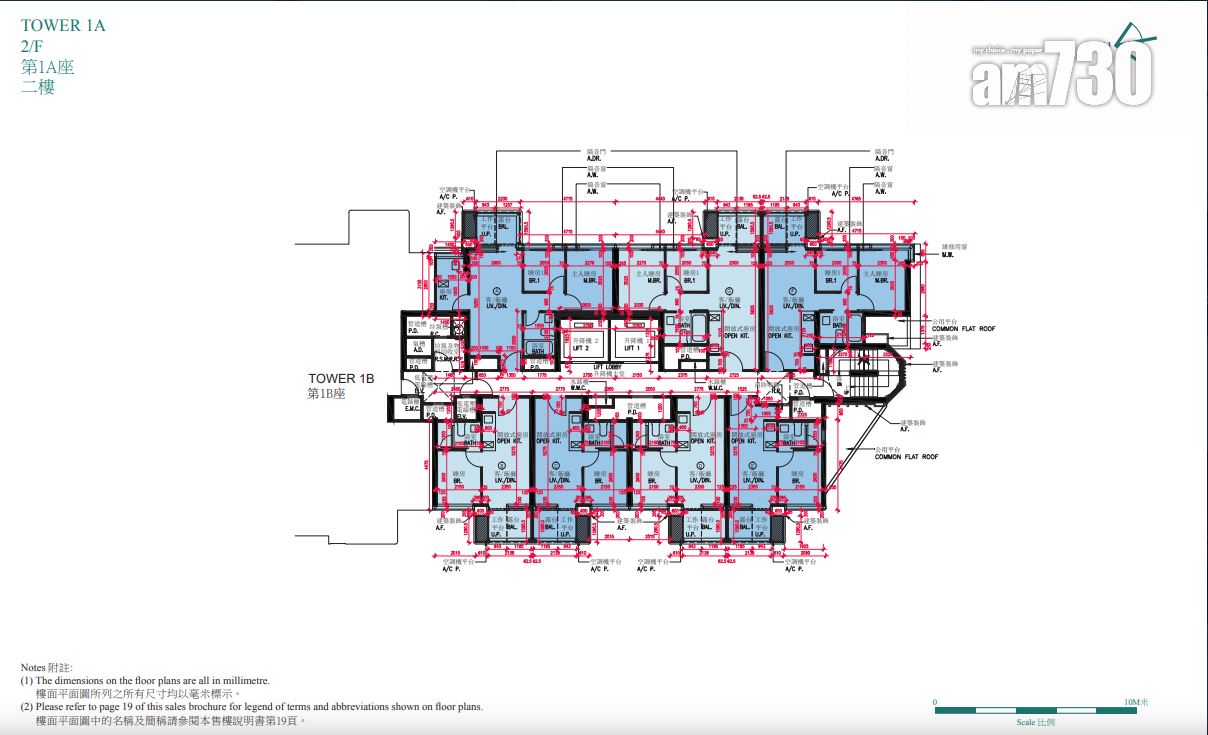 戶型分布方面,項目標準單位涉及701伙,實用面積由244至705方呎。項目主打兩房單位,提供292伙,佔近42%,實用面積由437方呎至509方呎。開放式及一房單位合佔約48%,各提供97伙和239伙,開放式實用面積由244至250方呎;一房實用面積由300至311方呎。另三房單位佔約10%,涉及73伙,實用面積由593方呎至705方呎,全部分布在第2座,廳房同向,享維多利亞港海景。