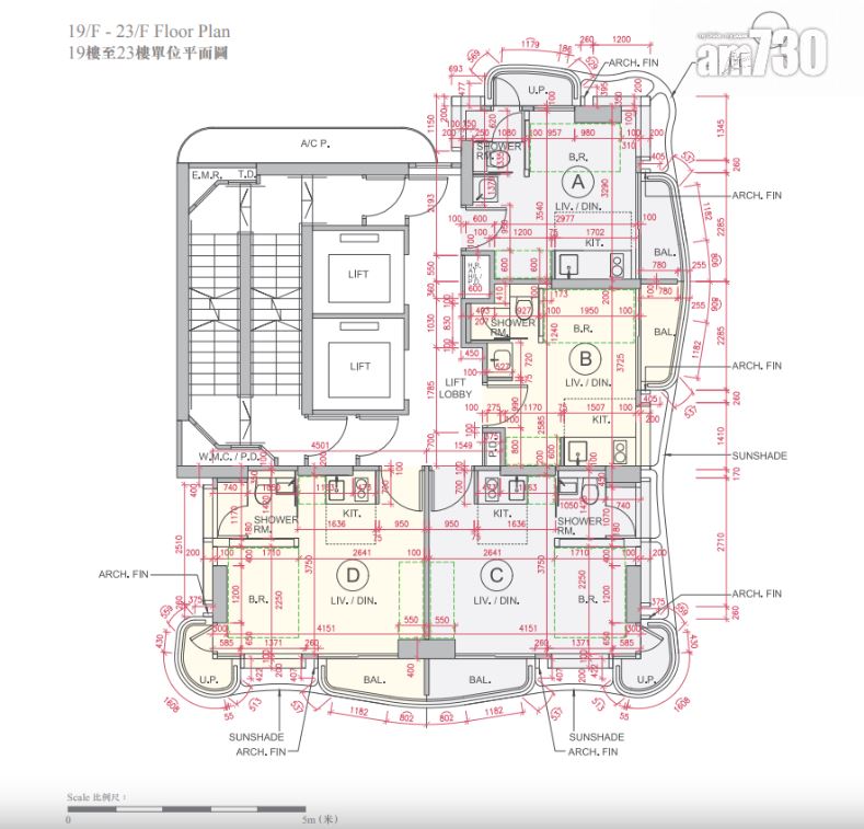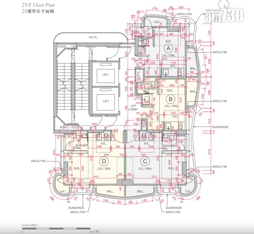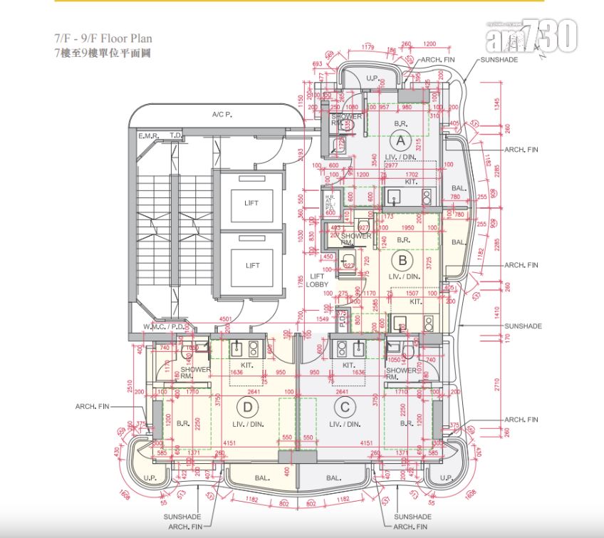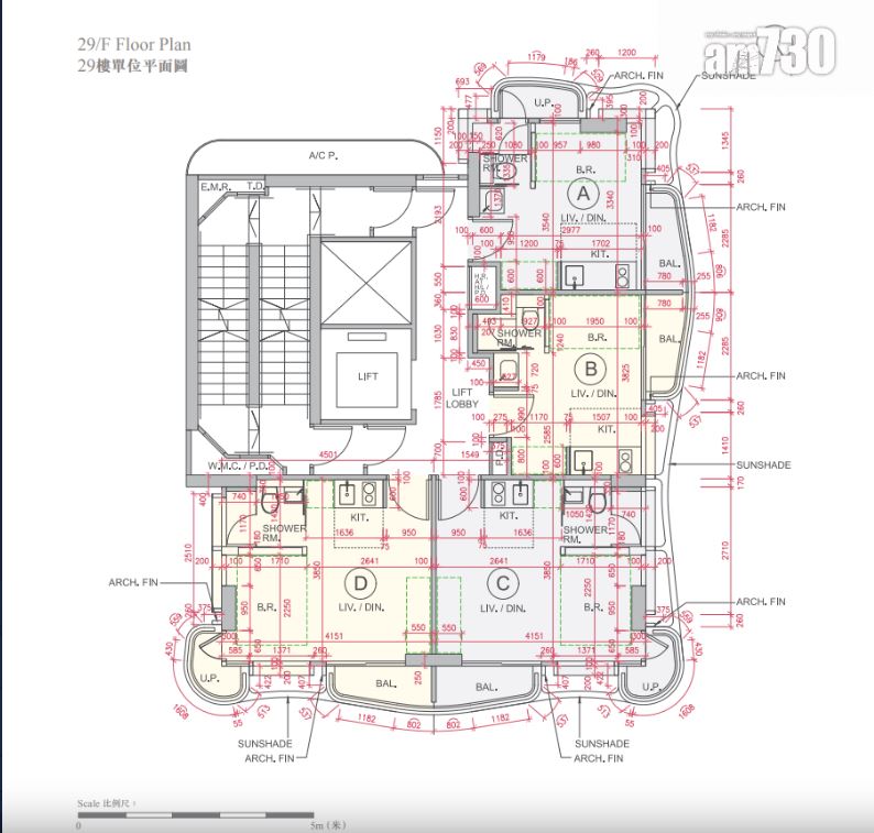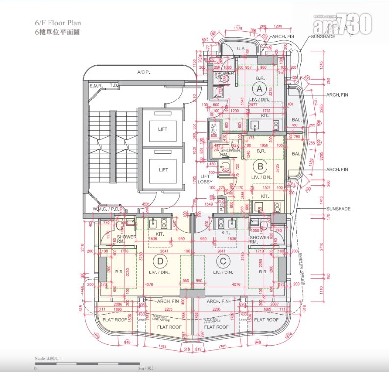 據樓書顯示,項目樓高27層,住宅樓層由6樓起,不設13樓、14樓和24樓,除26樓至28樓每層設3伙外,其餘樓層每層設4伙,均配備2部升降梯。另設2伙特色單位,位於6樓C室和D室,連79方呎平台。
