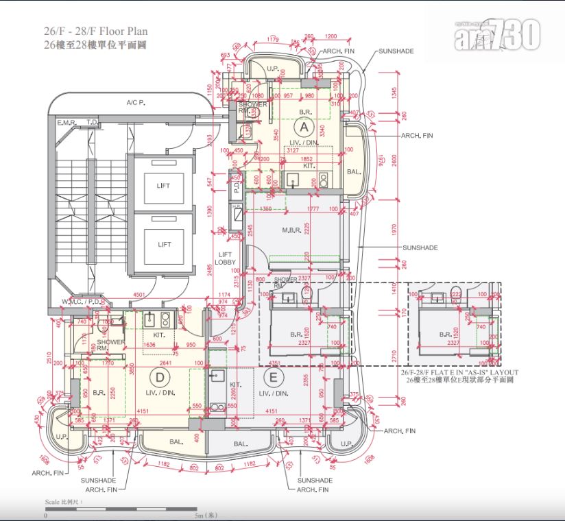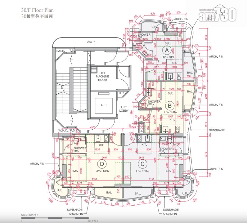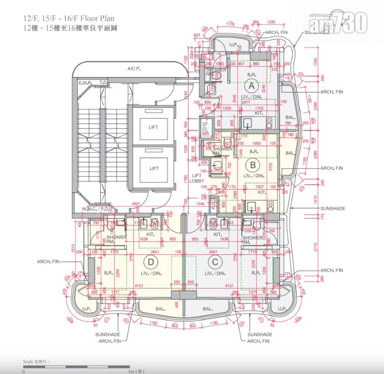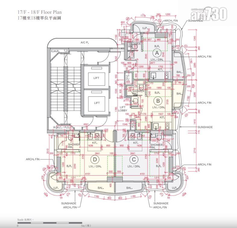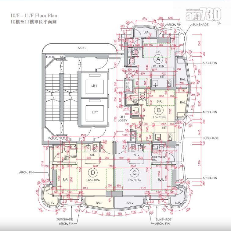 據樓書顯示,項目樓高27層,住宅樓層由6樓起,不設13樓、14樓和24樓,除26樓至28樓每層設3伙外,其餘樓層每層設4伙,均配備2部升降梯。另設2伙特色單位,位於6樓C室和D室,連79方呎平台。