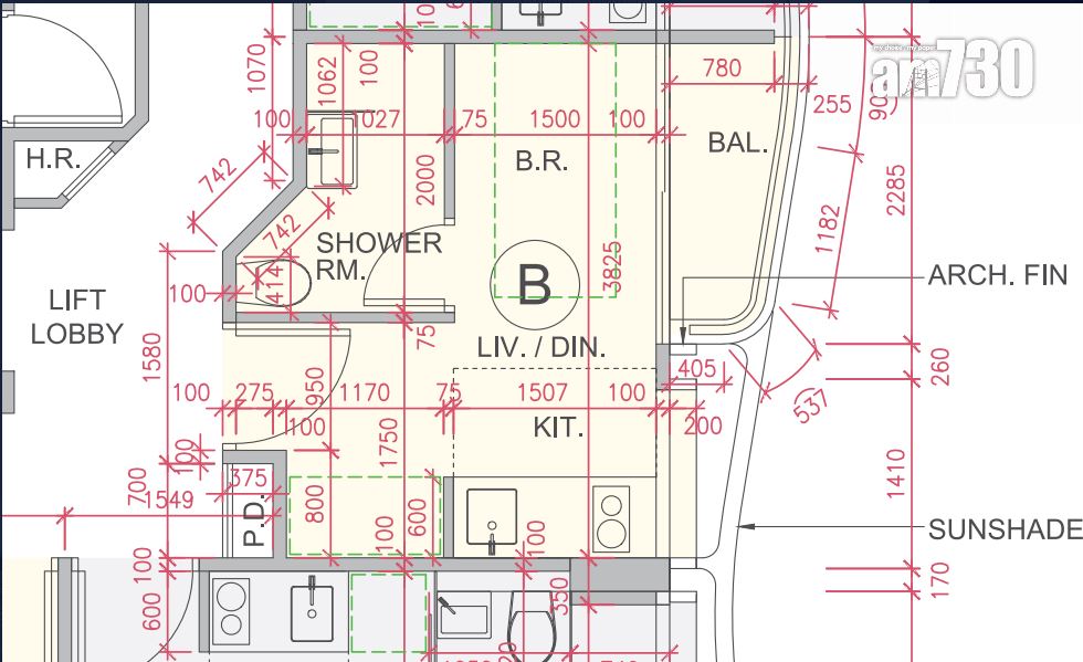 全盤面積最細單位為30樓B室,實用面積155方呎;面積最大單位包括26樓至28樓E室,實用面積388方呎。項目不設住宅停車位,地下至2樓為商鋪,5樓為住客會所位,面積達947方呎。