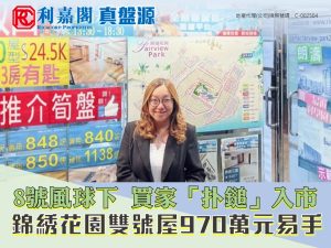 8號風球下 買家「扑鎚」入市 元朗錦綉花園雙號屋970萬元易手