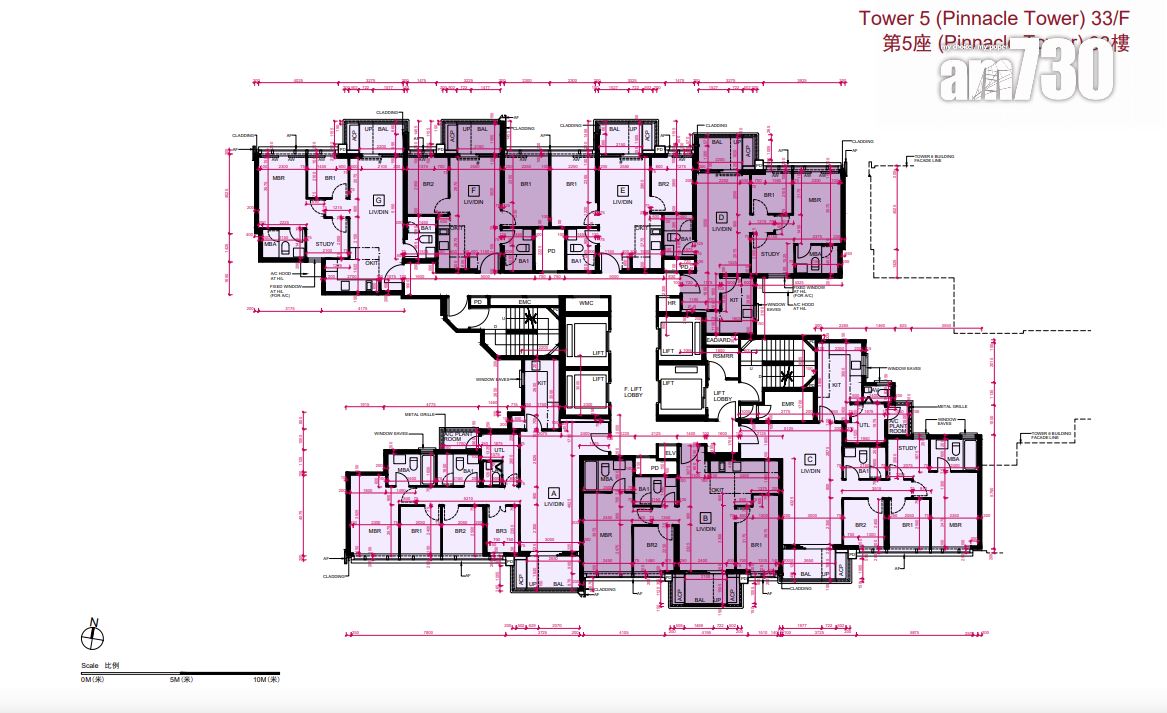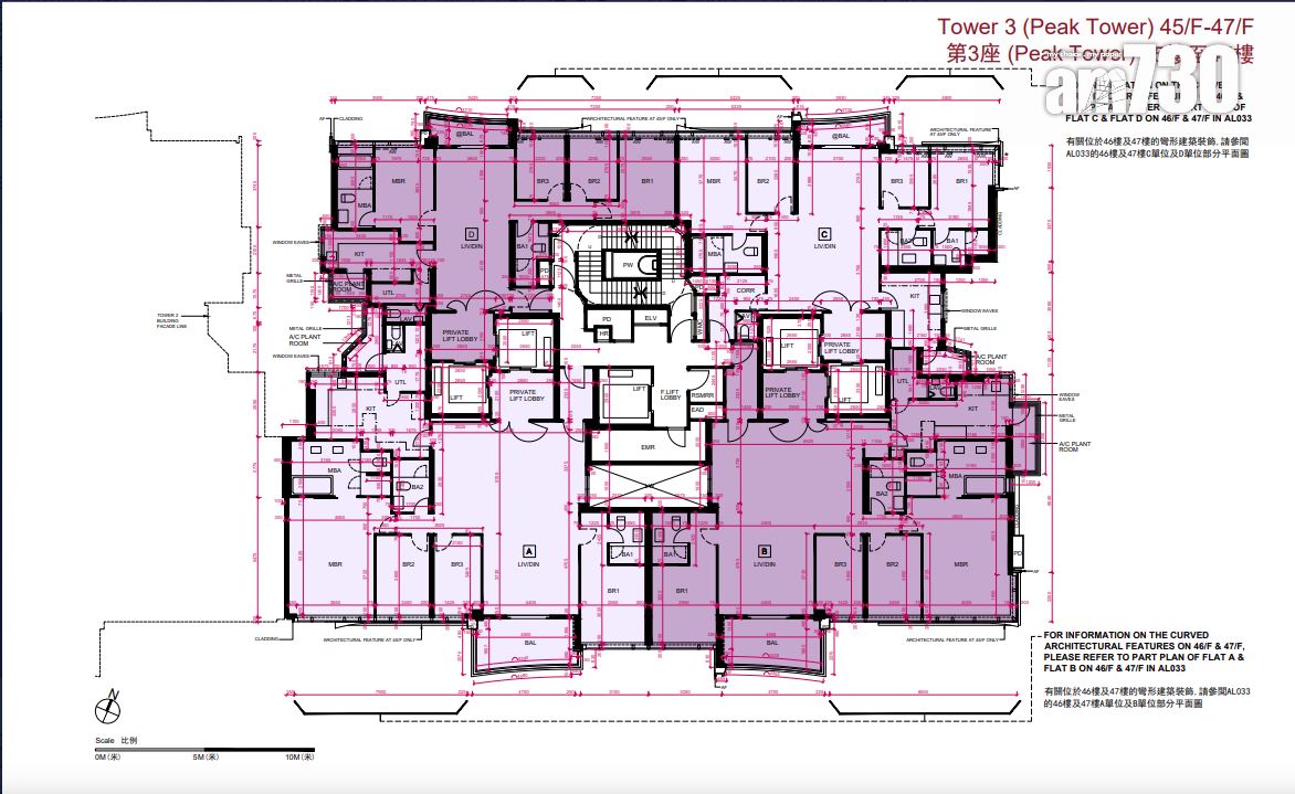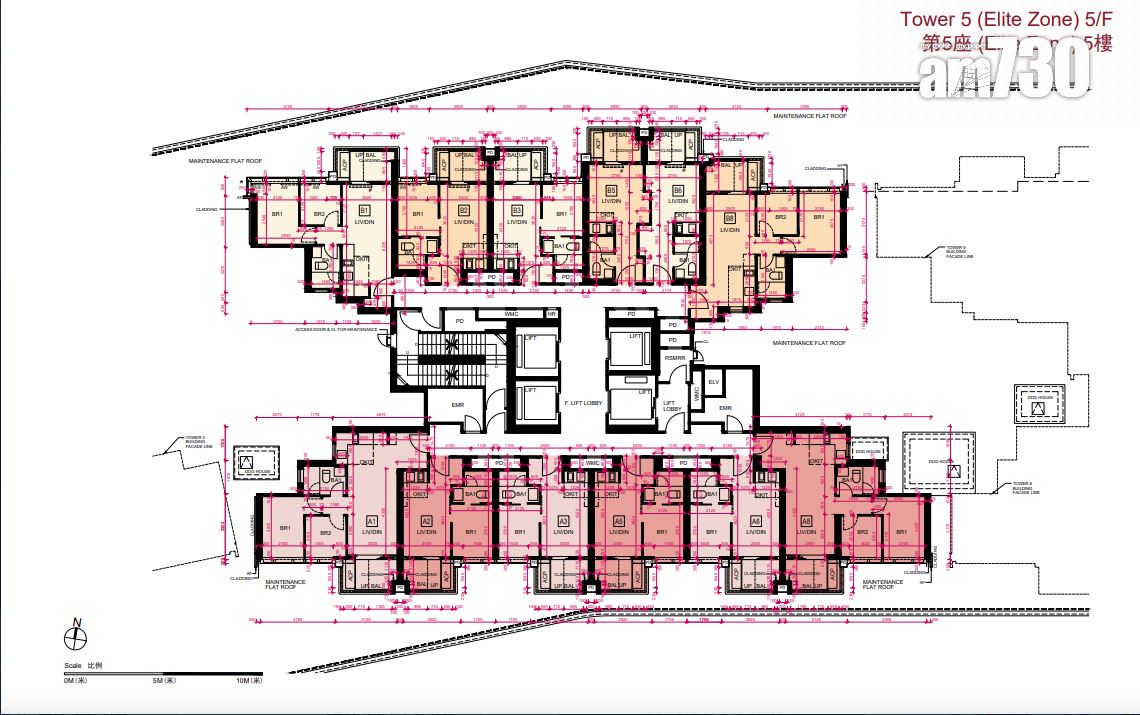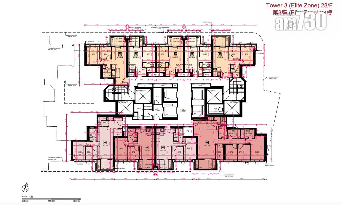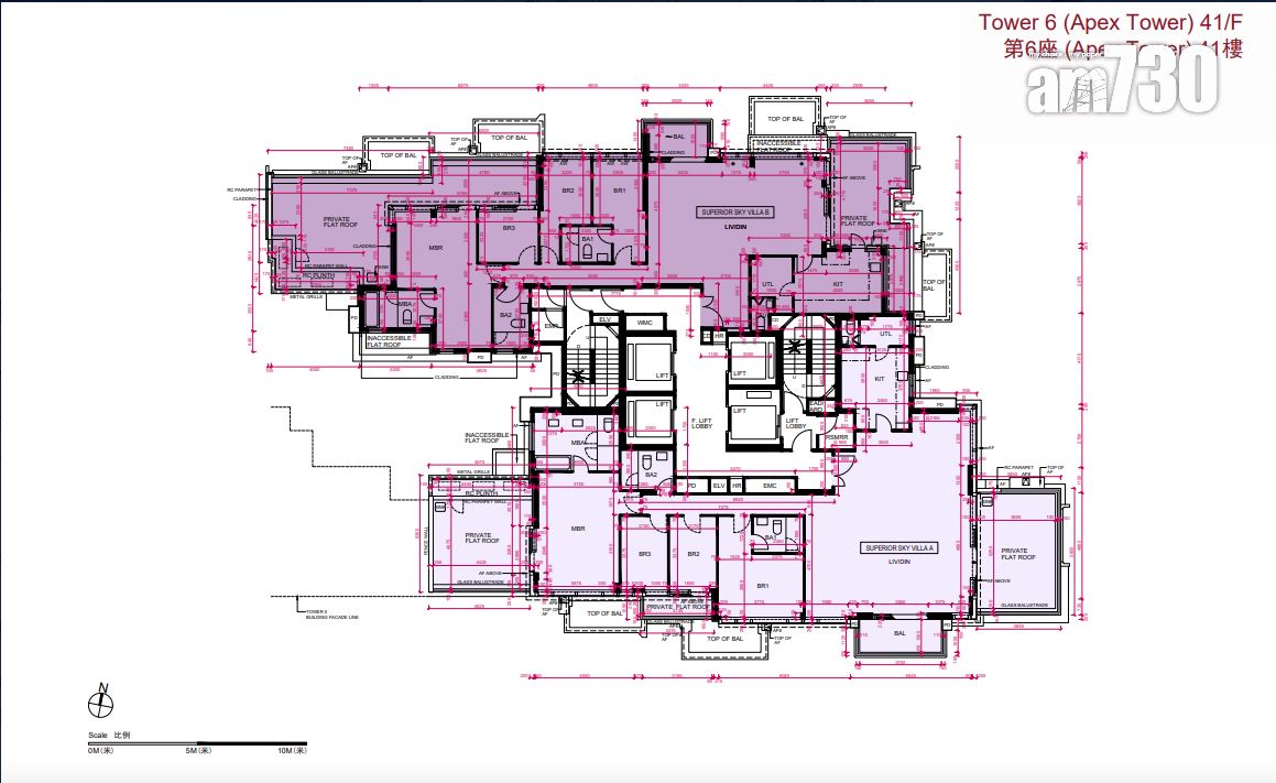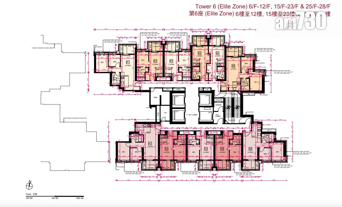 項目第3座5樓至28樓,以及第5座和第6座5樓至30樓空中花園對落的低層區域「Elite Zone」提供718伙,戶型涵蓋開放式至三房,實用面積介乎236至887方呎。另外,空中花園對上三個高層區域提供188伙,入場戶型由兩房起,主打三房及四房,實用面積介乎445至3,936方呎。當中第3座32樓至50樓「Peak Tower」,涉及60伙;第5座及第6座32樓至42樓「Pinnacle Tower」及「Apex Tower」,分別涉及約60伙及約68伙。