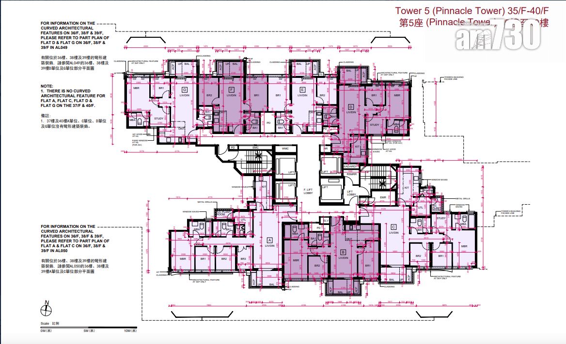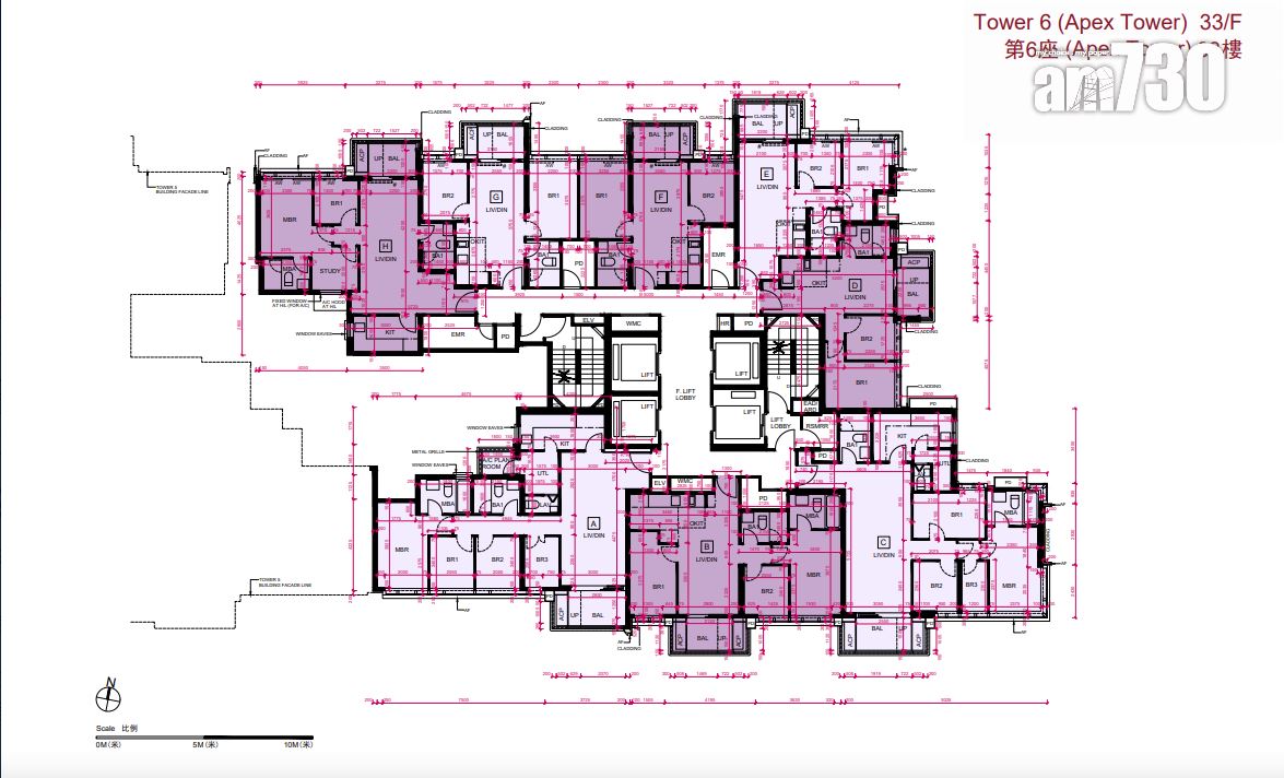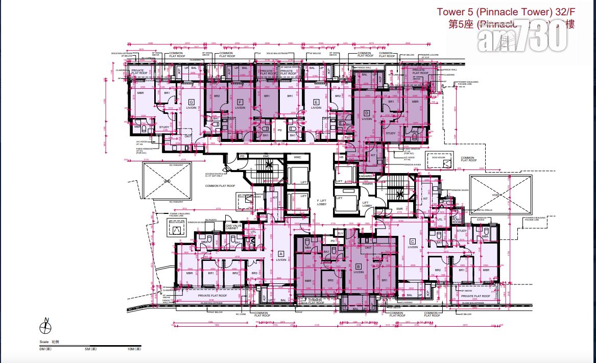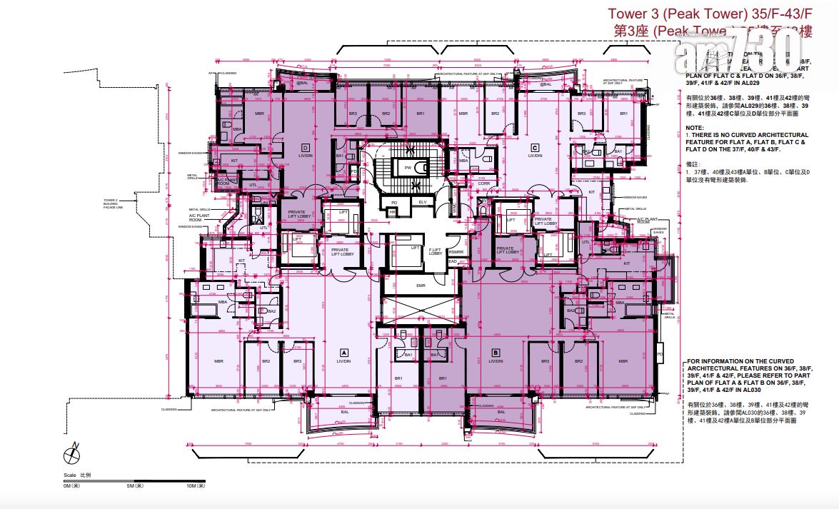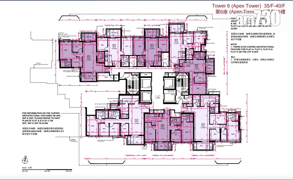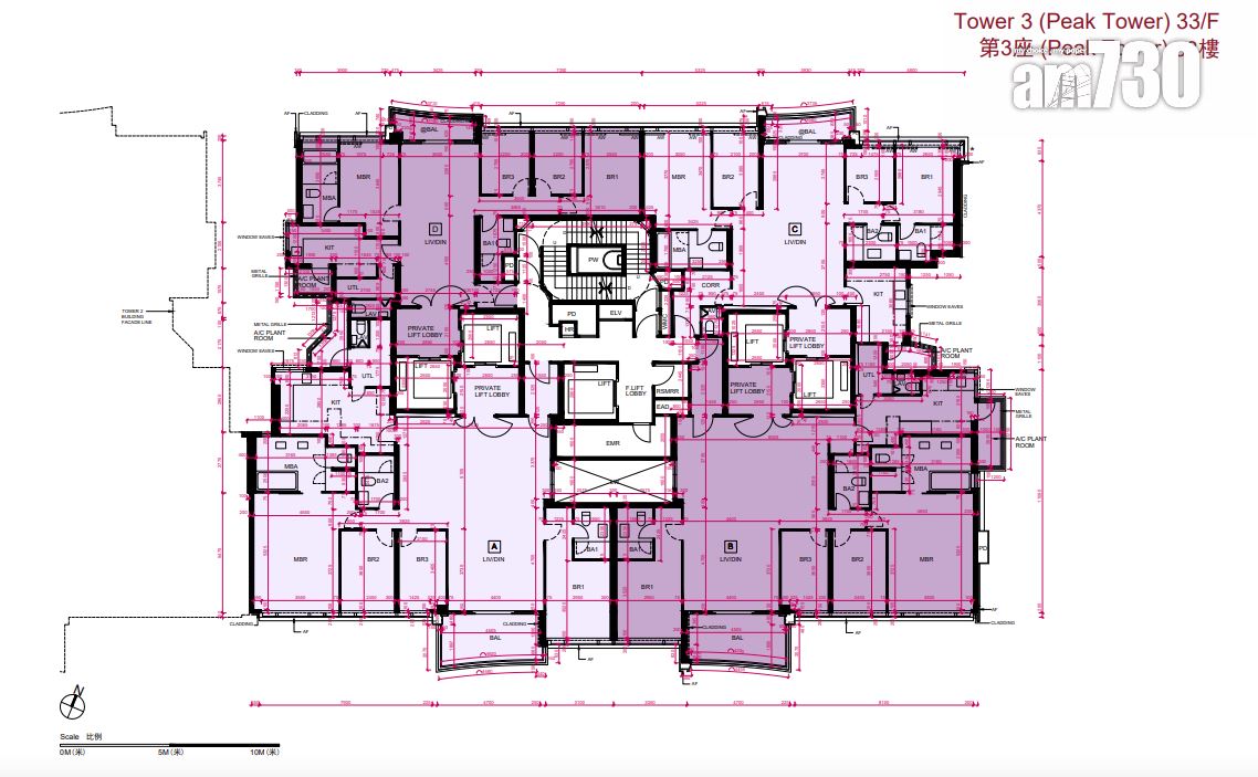 項目第3座5樓至28樓,以及第5座和第6座5樓至30樓空中花園對落的低層區域「Elite Zone」提供718伙,戶型涵蓋開放式至三房,實用面積介乎236至887方呎。另外,空中花園對上三個高層區域提供188伙,入場戶型由兩房起,主打三房及四房,實用面積介乎445至3,936方呎。當中第3座32樓至50樓「Peak Tower」,涉及60伙;第5座及第6座32樓至42樓「Pinnacle Tower」及「Apex Tower」,分別涉及約60伙及約68伙。