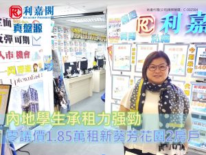 司徒氏指,新租客為內地學生,就讀於鄰近大學,早前經利嘉閣真盤源平台尋覓附近租盤,見上址放盤即預約睇樓。客人心儀屋苑屬港鐵上蓋,方便上學之餘,衣食住行一應俱全,加上單位位處極高層,享開揚景致,且裝修簇新,全屋傢電齊全。睇樓當日另見2組客人參觀,新租客有感盤源搶手,即不議價以18,500元租入,折合實用面積呎租約46元。