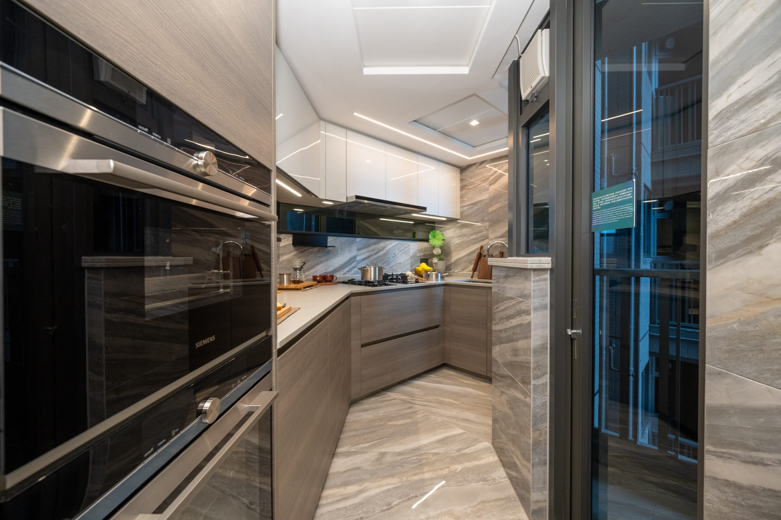 單位採用時尚梗廚設計,間隔方正實用連工作平台,提供寬敞的烹調空間,住戶能夠輕鬆盡享入廚的樂趣。廚房選用一系列知名廚具德國品牌Siemens電器,包括抽油煙機、氣體煮食爐、蒸爐、焗爐、洗衣乾衣機及雪櫃連冰箱,更同時被整合到廚櫃之中,節省空間之餘又顯整潔歸一。