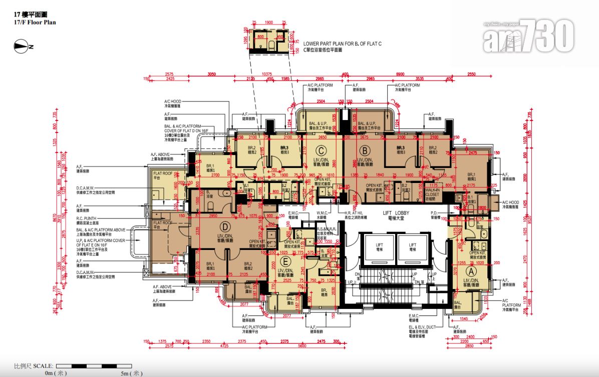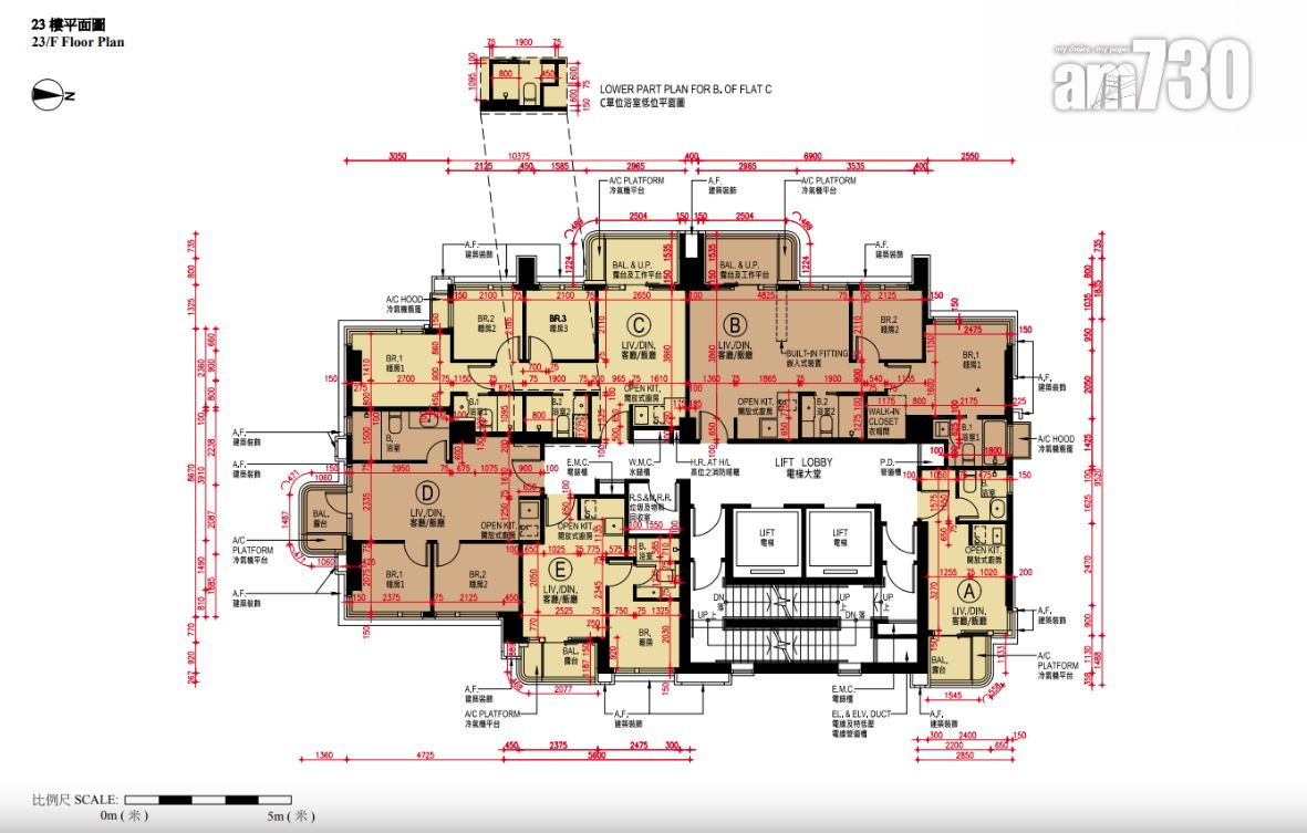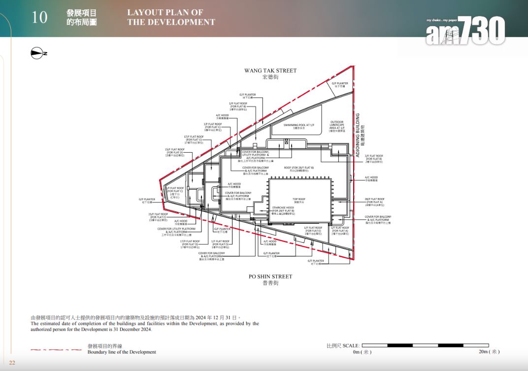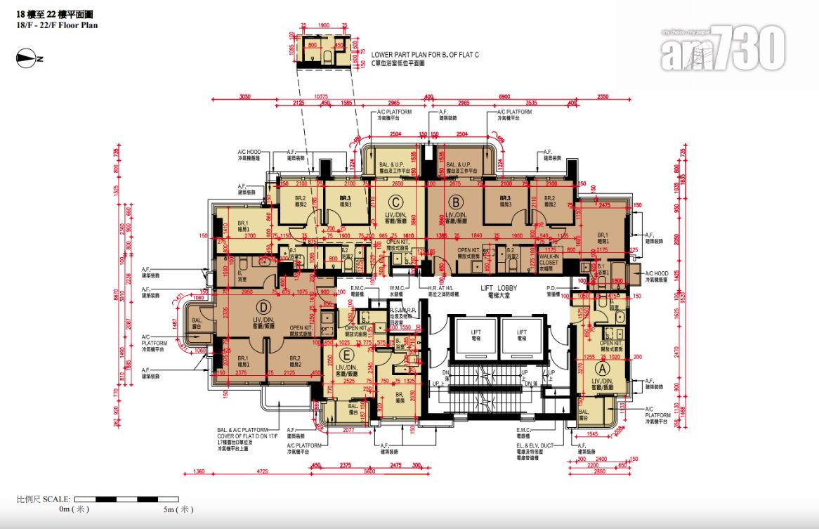 據樓書顯示,項目樓高25層,標準單位每層設6伙及2部升降機。項目標準單位提供111伙,實用面積介乎179至1,175方呎。戶型主打三房,佔36伙,實用面積介乎479至559方呎;其次一房設30伙,實用面積介乎231至275方呎;而開放式及兩房分別提供22伙及20伙,開放式實用面積介乎179至180方呎,兩房實用面積介乎379至535方呎。四房僅提供3伙,實用面積均為1,175方呎。