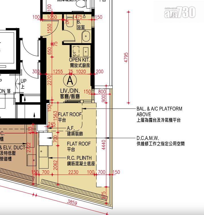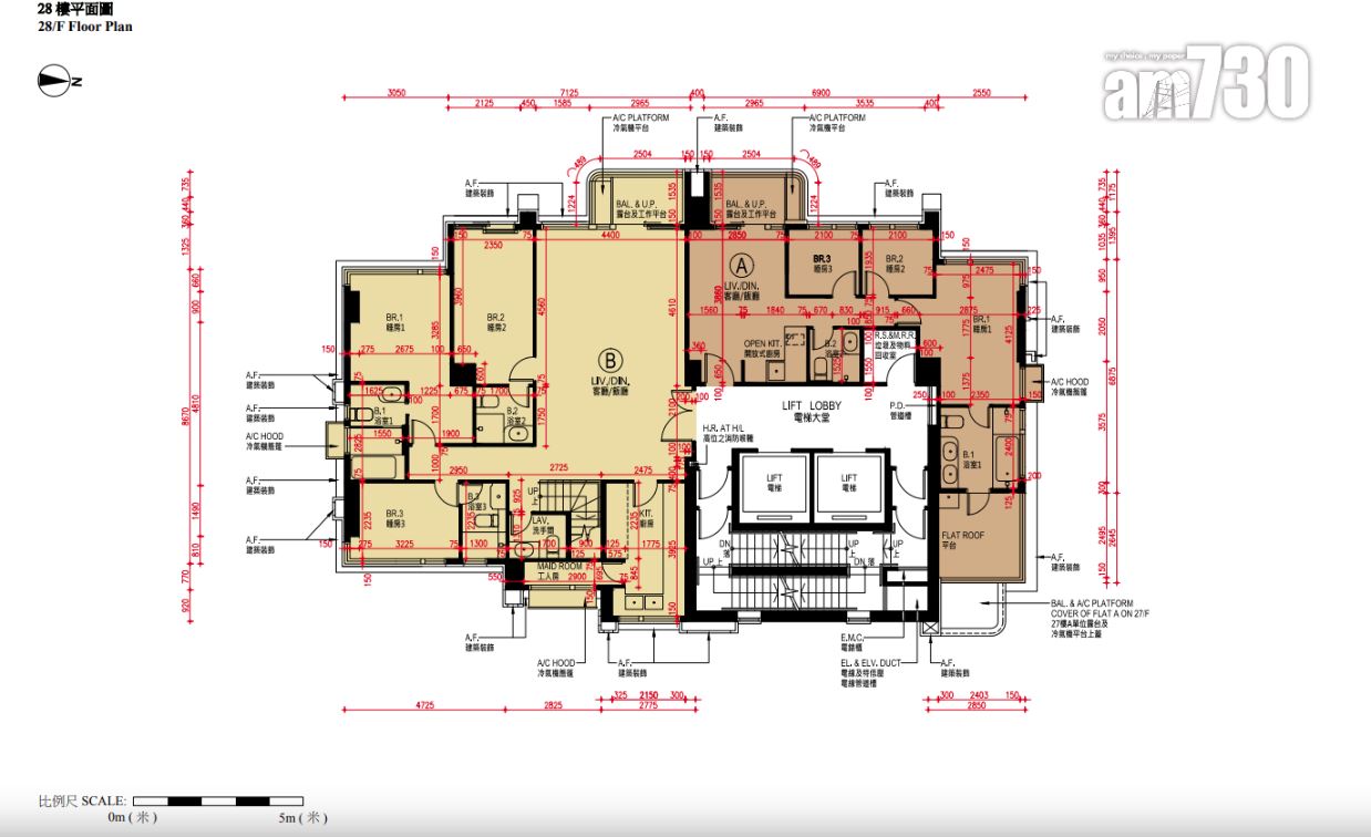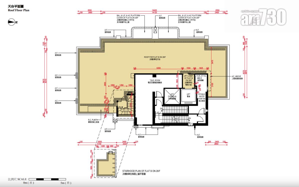 項目另設有12伙特色單位,包括11伙連平台單位,平台面積介乎32至227方呎,以及1伙連天台頂層單位。全盤面積最小單位為1樓A室,實用面積147方呎,連147方呎平台;至於全盤面積最大單位為28B室,實用面積1,211方呎,連1,320方呎天台,可經由室內樓梯前往。