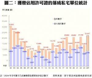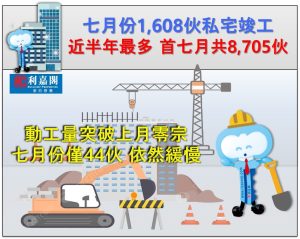 七月份私宅落成量1,608伙 六個單月最多 同月僅44伙私宅動工 近18個月次少