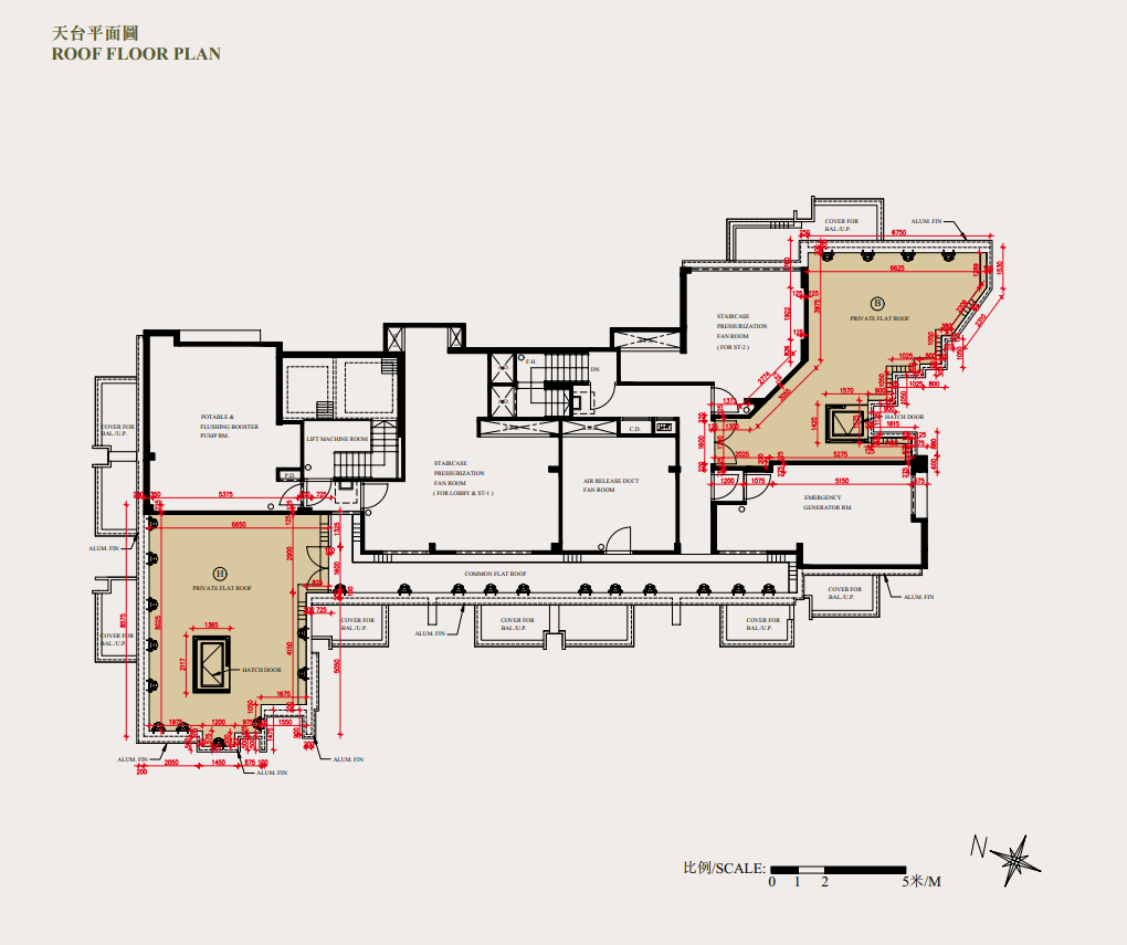 頂層連天台單位分別位於12樓B室及H室,實用面積分別為449平方呎及488平方呎,同為2房1套間隔;分別外接469平方呎及520平方呎的天台,同為「天台大過屋」。兩者天台均由內置樓梯連接,當中B室的樓梯對正大門,H室的樓梯則位於兩廳中央。