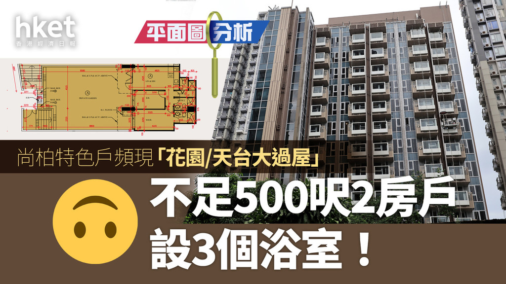 平面圖分析|尚柏特色戶頻現「花園/天台大過屋」 不足500呎2房戶設3個浴室!