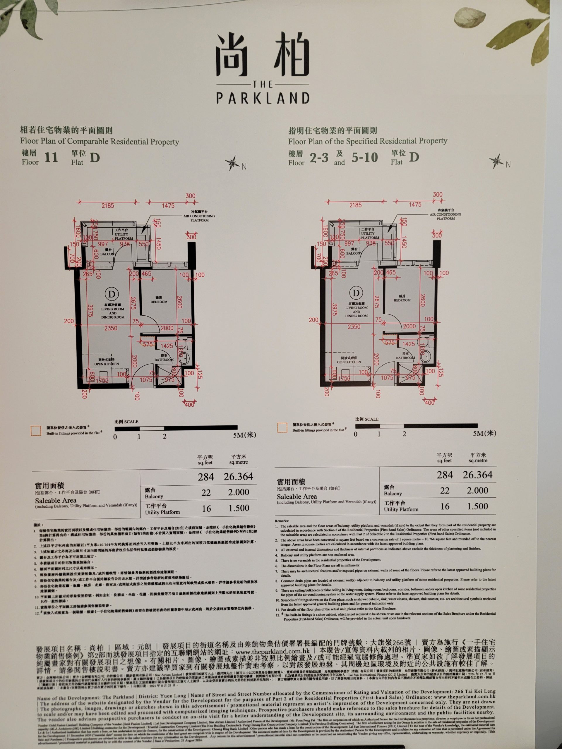 11樓D室「鳥語林間」,一房間隔,實用面積284方呎,單位均配備大金變頻冷暖分體式空調機及Samsung輕觸式指紋門鎖。獨立浴室設有Panasonic浴室寶,以及全套Hansgrohe水龍頭與淋浴裝置及斯寶亞創即熱式電熱水爐。