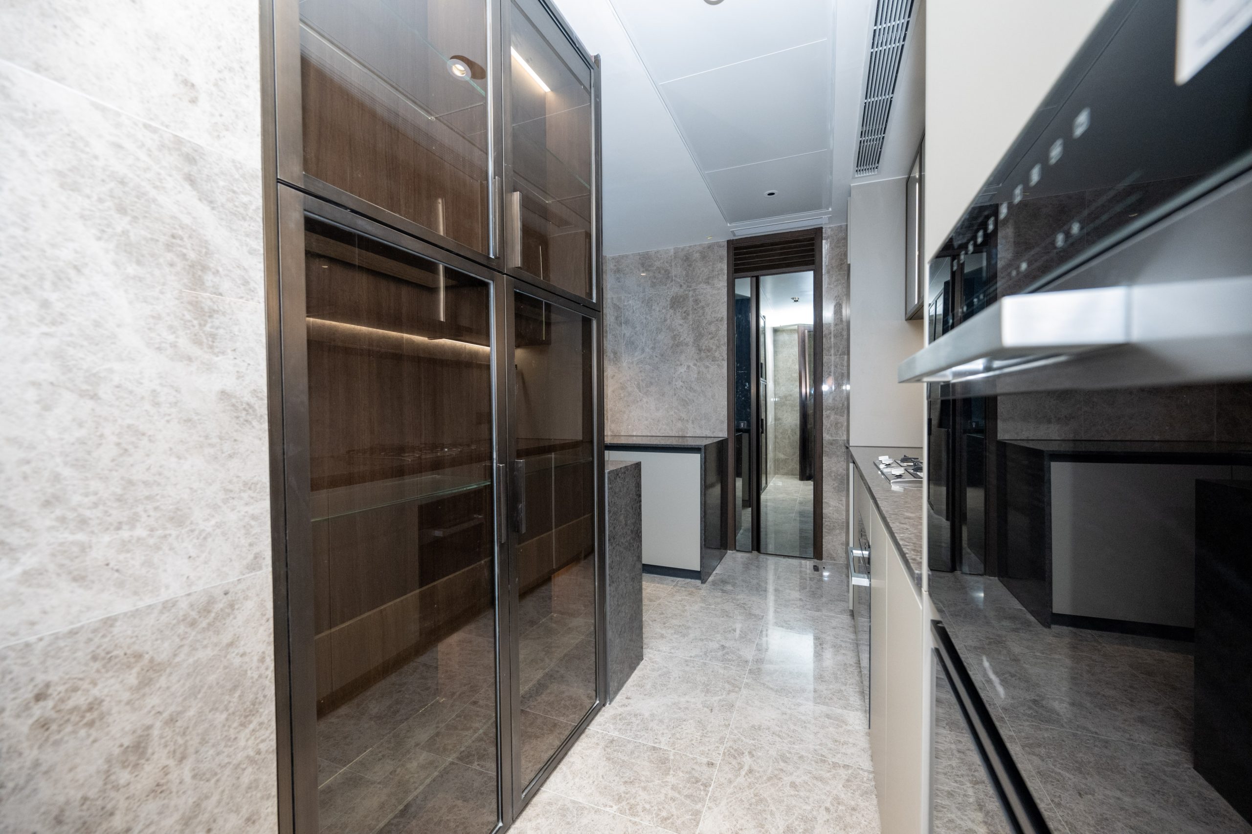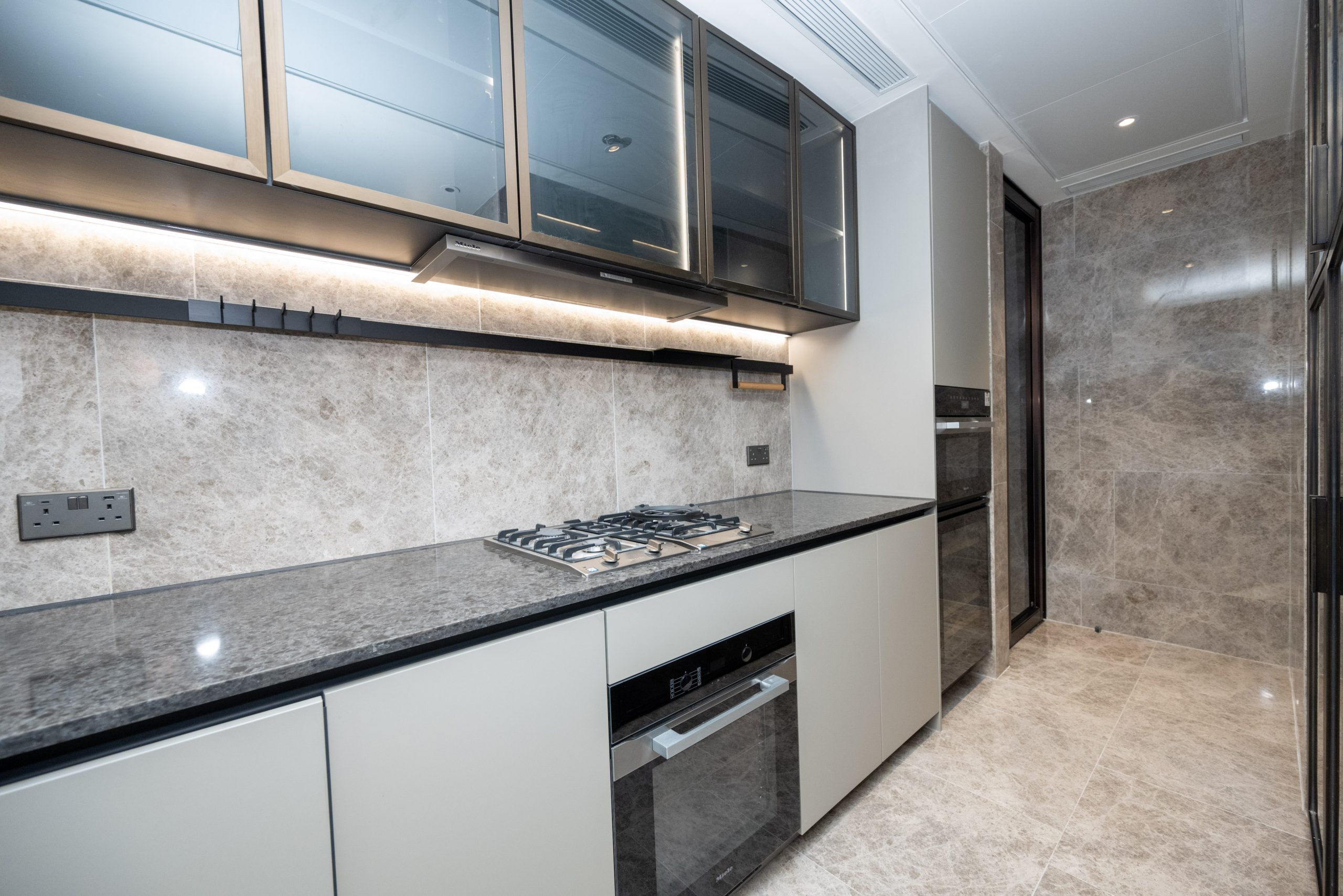 廚房所有家電均選用德國品牌Miele,包括煮食爐、焗爐、蒸爐連微波爐、雪櫃、洗衣乾衣機及酒櫃等;廚櫃選用德國品牌LEICHT,時尚實用。廚房連接工作間及洗手間,設計貼心實用。單位引入全方位智能家居,可控制全家照明系統、電動窗簾和冷氣機;更設有地板隔音系統,減低噪音滋擾,特別照顧需要夜班工作的住戶。另備有SunClean UV消毒天花燈,為住戶增添多一重健康保障。