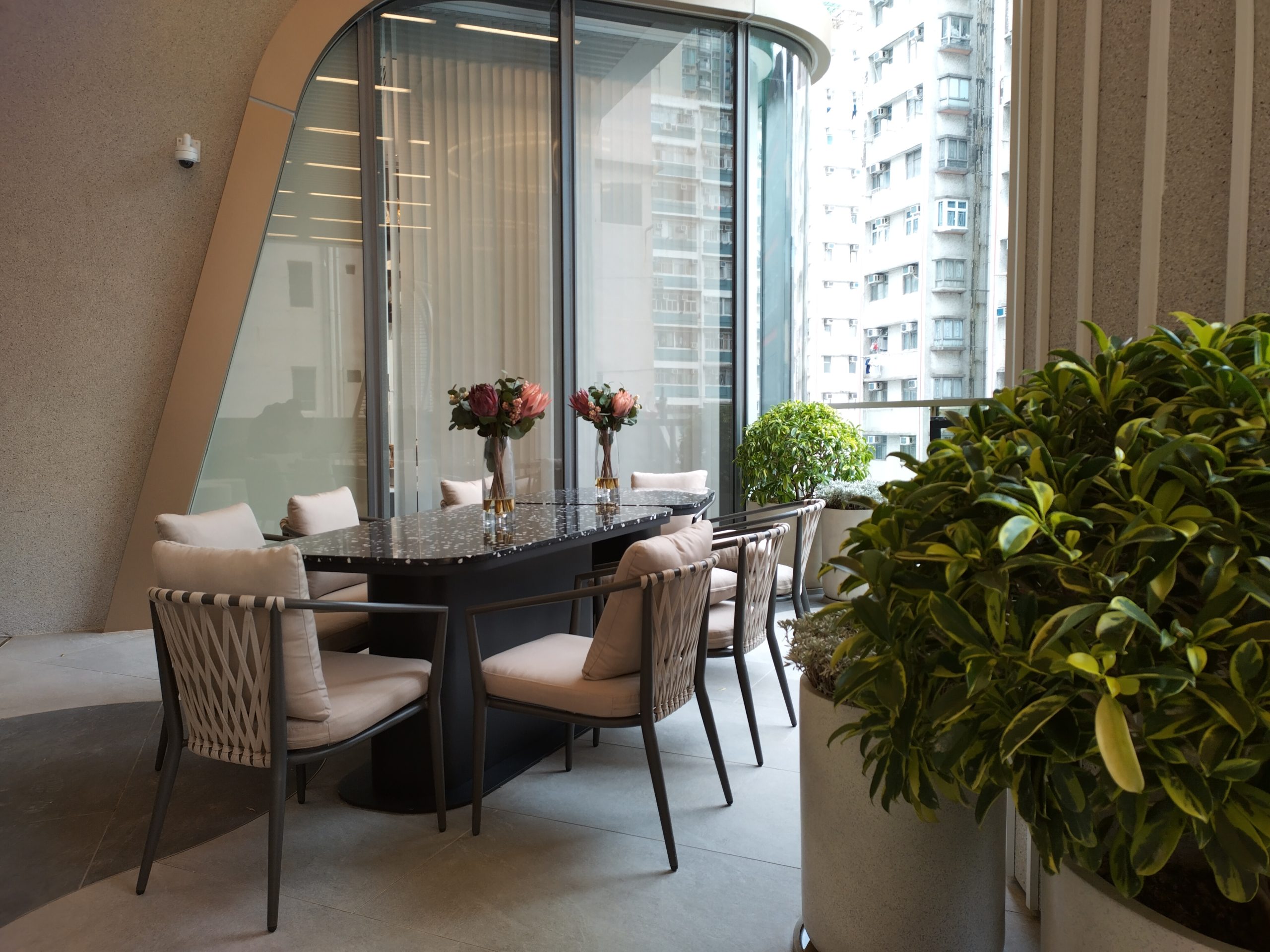 26樓G室,一房間隔,實用面積293方呎,客飯廳連接38方呎露台連工作平台,與廚房旁的窗戶呈對流設計,增加採光及加強通風;露台朝向西南方向,享開揚九龍城景及海景;採用市場罕有雙門設計,住戶能更靈活運用露台空間,可擺放小桌椅或盆栽,並設有特色Bar Corner,打造專屬小酒吧或咖啡角落;層與層之間享3.5米的樓層高度,提升空間感,亦方便住戶進行空間自主規劃;單位採用主人套廁設計,設有窗戶,增加採光及加強通風;開放式廚房的廚櫃採用優雅Vert Cypress墨綠色系櫃門,盡顯簡約時尚風格。