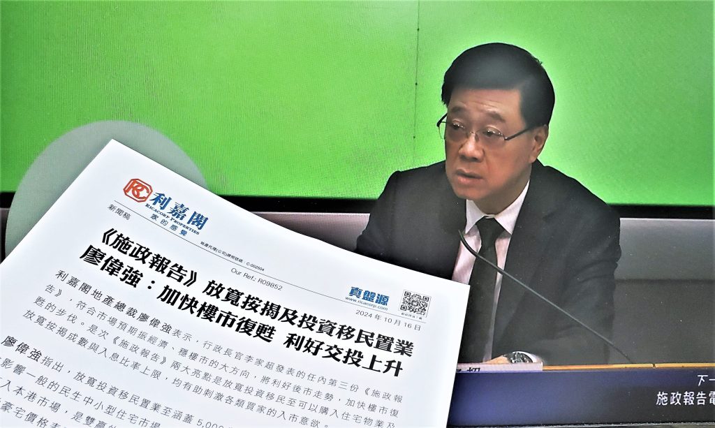 《施政報告》放寬按揭及投資移民置業 廖偉強:加快樓市復甦 利好交投上升