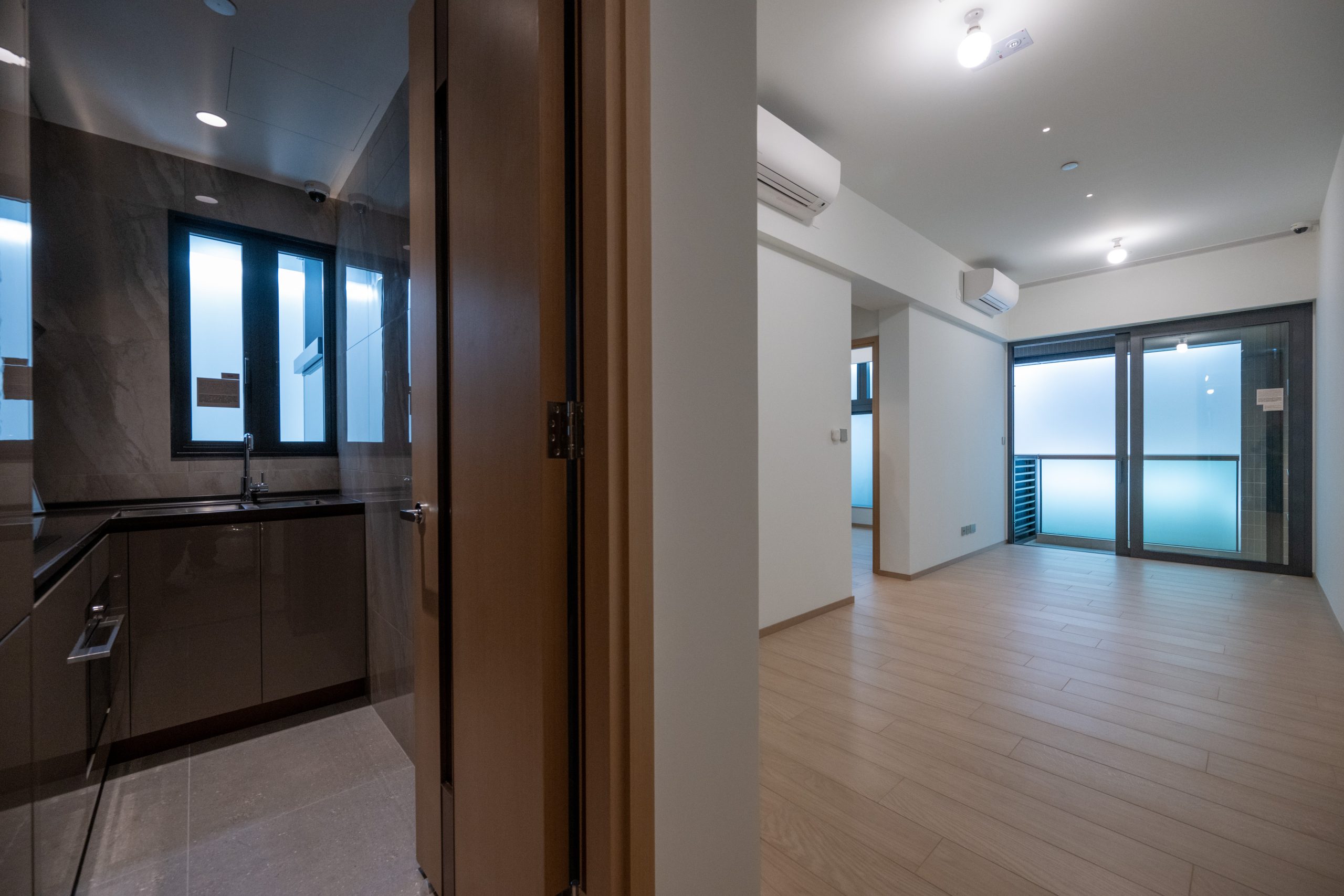 客廳以長方形開則,長達6.3米,闊約2.4米,連接一個特大38方呎「Balcony Max」特大合併露台,尊享寬敞戶外空間,更配置「Flexi-Rack」兼具餐枱、晾衣裝置及DIY種植架功能;單位選用日本品牌DAIKIN分體式冷氣機。大門採用實心木門,旁邊預設有「Smart Cabinet」多功能鏡面櫃,既滿足多樣化的收納需求,又方便住戶一進門就能輕鬆安置隨身物品。