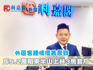 利嘉閣地產東半山跑馬地希慎道分行A組分區董事梁國樑(Stephen)稱,該行客戶董事邱柱杰(Fat)新近促成東半山上林2座高層C室的二手租賃成交個案,單位實用面積約1,000方呎,採3房1套連工人套房間隔,外望維港海景及翠綠山景。