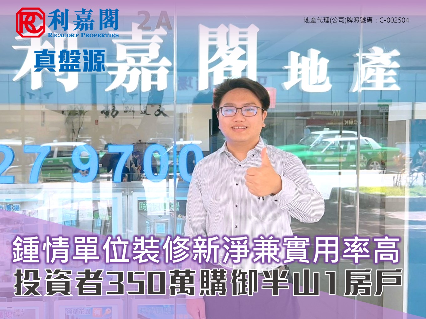 鍾情單位裝修新淨兼實用率高 投資者350萬購屯門御半山1房戶 二手動向 2024-10-19 by Connie Li · Published 2024-10-19 · Last modified 2024-10-18