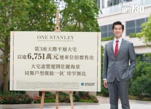 豪宅新盤交投活躍,建灝地產旗下赤柱「ONE STANLEY」再添成交,售出第3座的天際平層大宅,成交價逾6,751萬元,呎價逾3.5萬元,為項目首宗天際平層大宅成交。