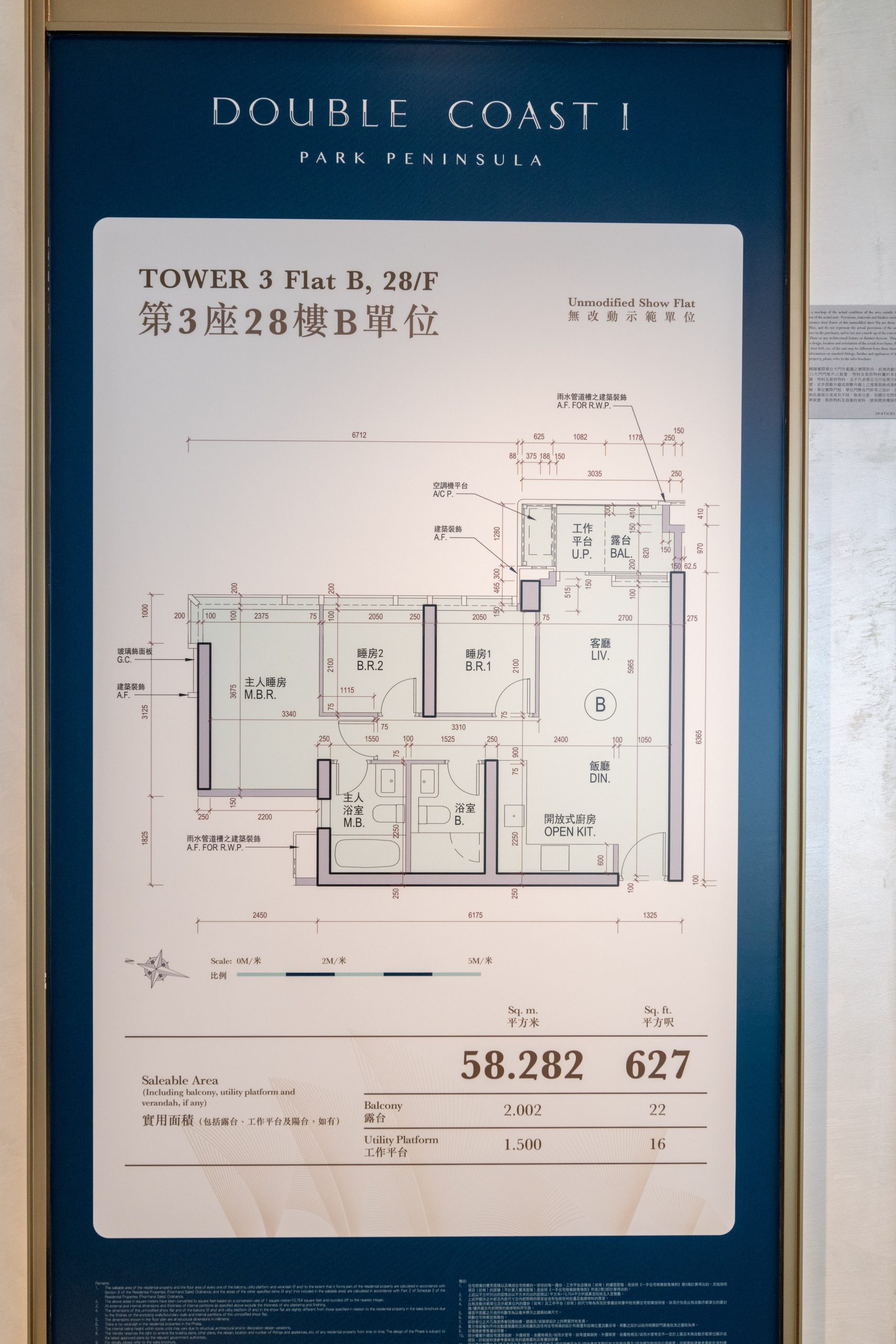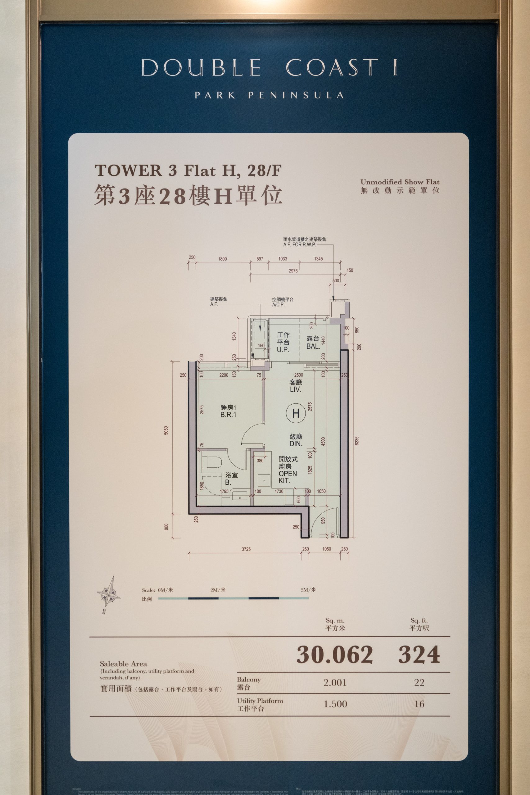 由會德豐地產、恒基地產、中國海外發展及新世界發展合作發展的啟德海灣半島PARK PENINSULA新盤「DOUBLE COAST I」設有3個示範單位,包括連裝修兩房1個,以及交樓標準無改動的一房及三房單位各1個,實用面積介乎324至627方呎,預料最快於本周末開放予公眾參觀。