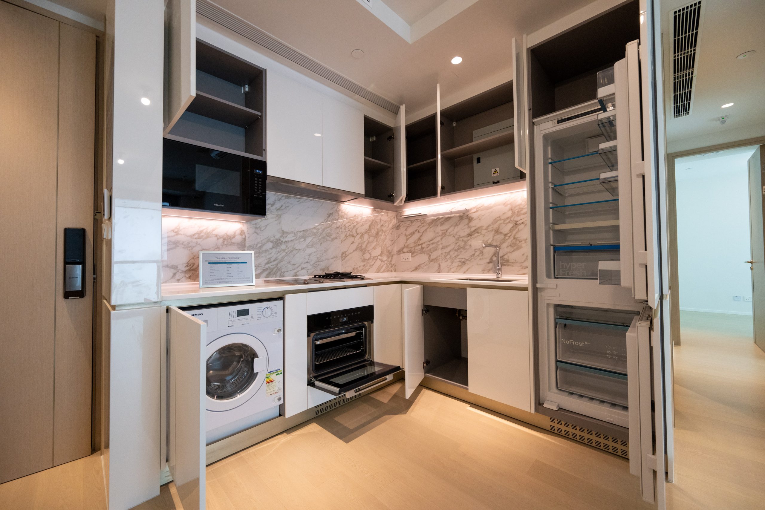 另外,開放式廚房設特長L型工作枱面,備餐空間充足,項目全數單位選用國際高級品牌Miele 煮食爐具,更升級配備Miele蒸焗爐。此單位的開放式廚房可以明火煮食,適合喜歡下廚的住戶。至於主人睡房空間偌大,放置雙人床後可三邊落床,亦貼心預留衣櫃空間,主人浴室採明廁設計,大大提升採光度及通風。