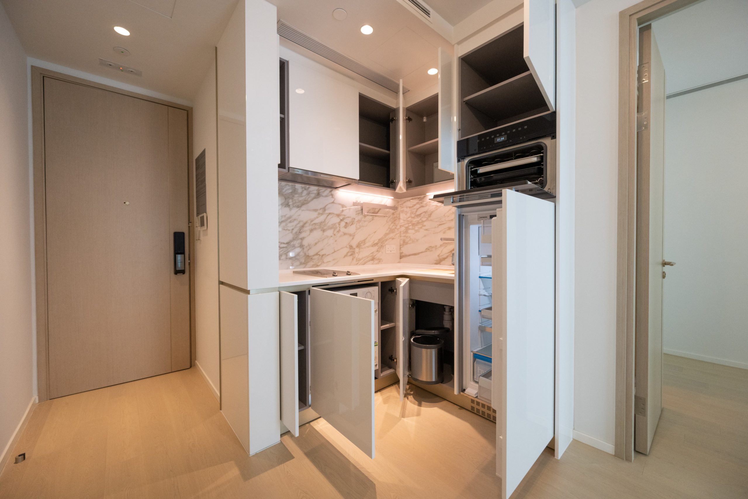 另外,第3座28樓H室,無改動一房示範單位,實用面積324方呎,適合於核心商業區工作的年輕才俊。單位坐擁啟德空中花園景觀,大門配備SAMSUNG智能門鎖,備有指紋、手機程式WIFI 配對、密碼、門卡及鎖匙5種模式,一步輕鬆開鎖。開放式廚房設特長L型工作枱面,充足盡用每寸空間,設有國際高級品牌Miele雙頭電磁爐、蒸焗爐、抽油煙機。而且一房單位都備有Miele蒸焗爐,突顯尊貴生活品味。睡房偌大寬闊,空間靈活實用。浴室需經由睡房抵達,特別預設全身鏡,輕鬆打造每日造型。